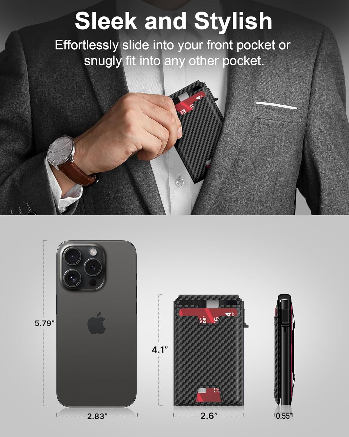 - š¦ššš¹š¶ššµ š¦š¹š¶šŗ šš²š š¦š½š®š°š¶š¼šš: This sleek wallet for men can hold 9-14 cards and 15 bills, fitting comfortably in any pocket. With a compact size of 4.09 x 2.6 x 0.55 inches and a light weight of 2.93oz, it's the wonderful accessory for everyday use.
