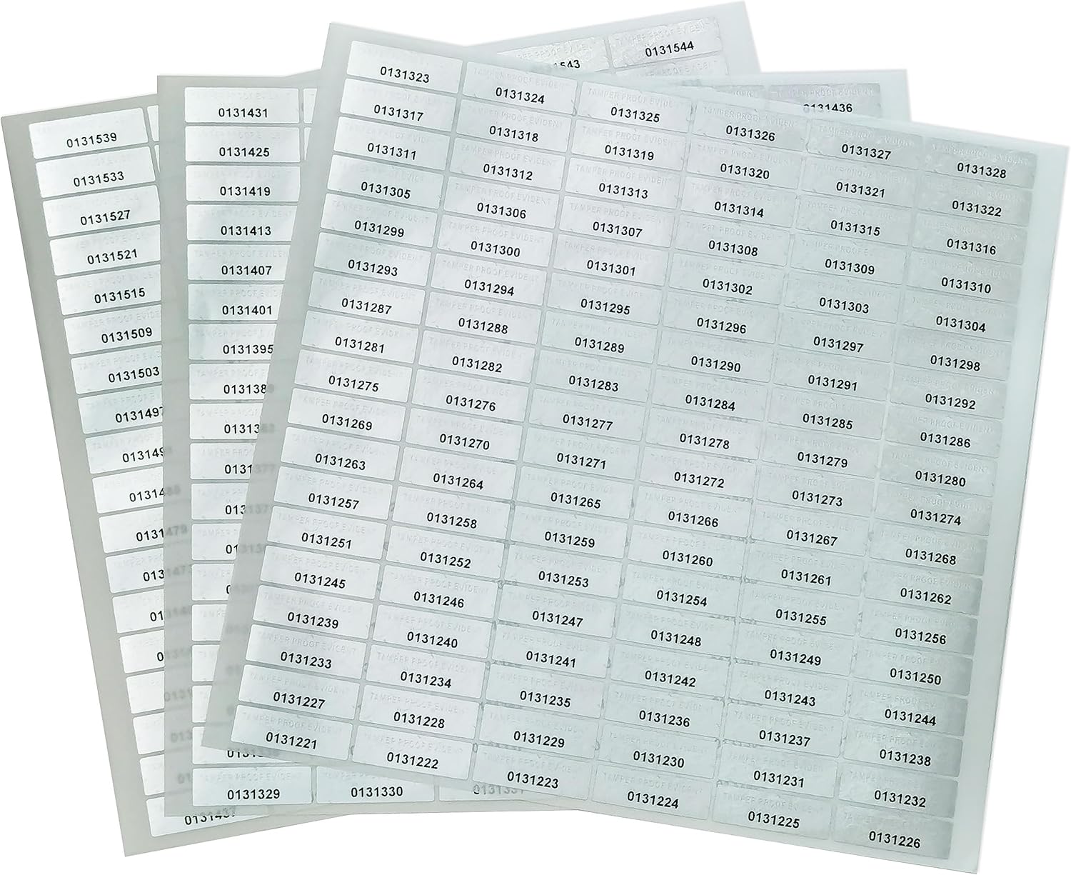 1200 Pieces Tamper Proof Evident Stickers Hologram Labels Security Seals Holographic Warranty Void Original Genuine Authentic Sequential Serial Numbering, 0.25 x 1 Inch Silver