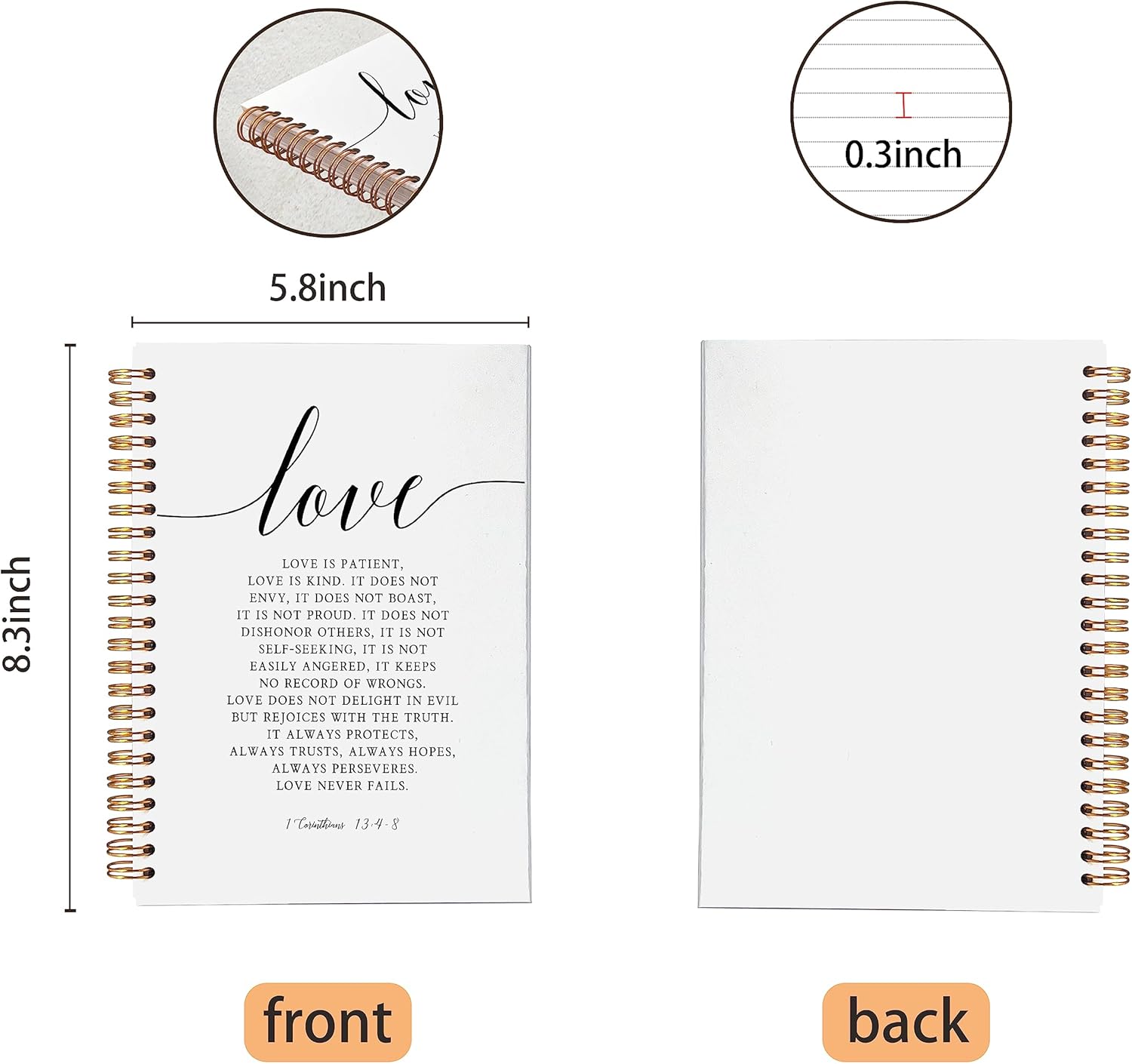 VNWEK Bible Scripture 1 Corinthians 13:4-8 Love Never Fails Spiral Notebook Journal 5.5 x 8.3 inches,Christian Lined Hardcover Spiral Notebook,Inspirational Christian Gifts for Women Men Faith Teens