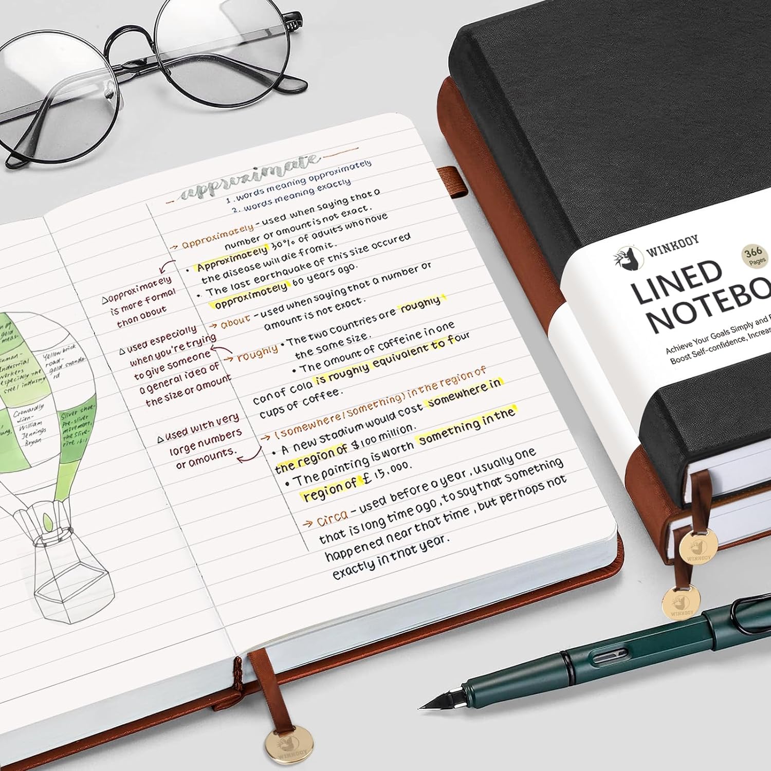 Lined Journal Notebook, 366 Pages, 100Gsm Leather Hardcover Journals for Writing Thick A5 College Ruled Classic Notebook with Pen Loop, Daily Journal for Women Men Travel Business Work Office