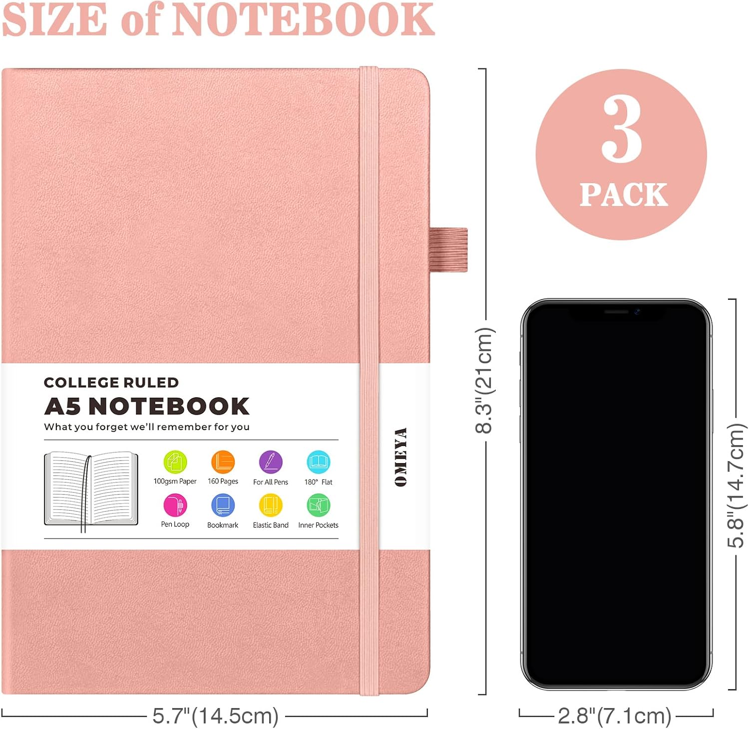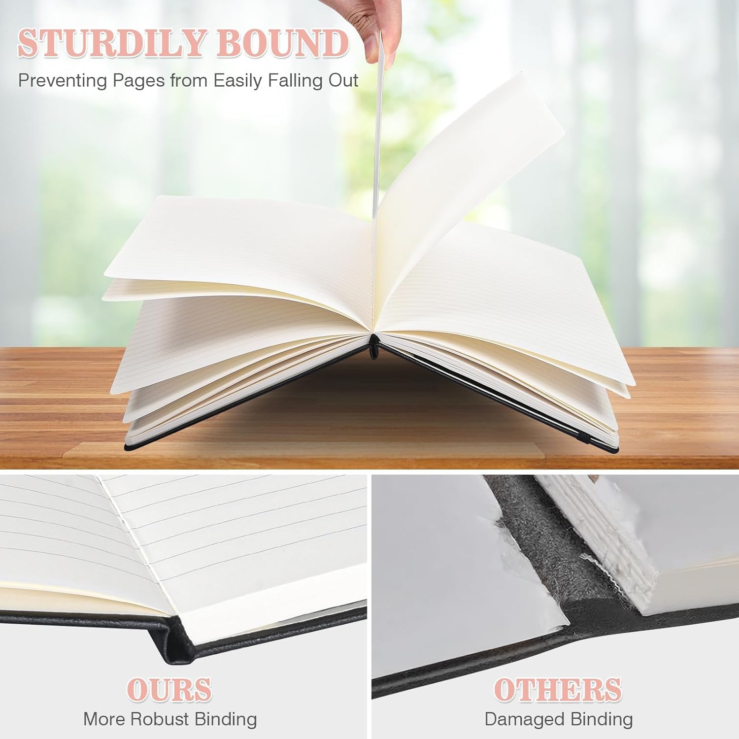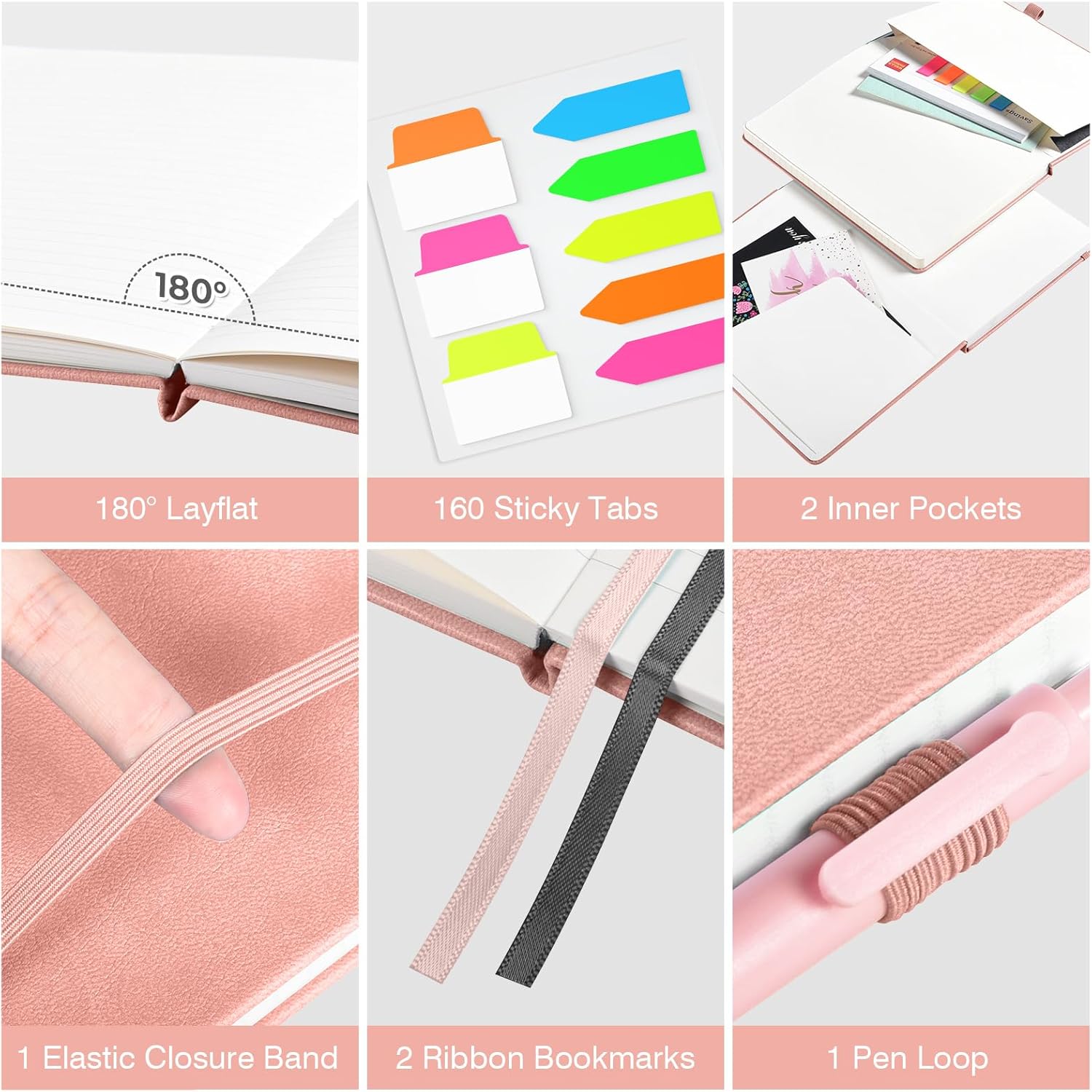 - 【Thoughtful Accessories】Our hard cover notebook comes with a range of practical accessories to enhance your writing experience. Each notebook includes 2 pockets, 2 bookmark ribbons, 1 elastic band, 1 pen loop. And as a bonus, each set of notebooks comes with 3 pens that match the color of the notebooks, along with 160 PCS colorful index & tabs stickers.