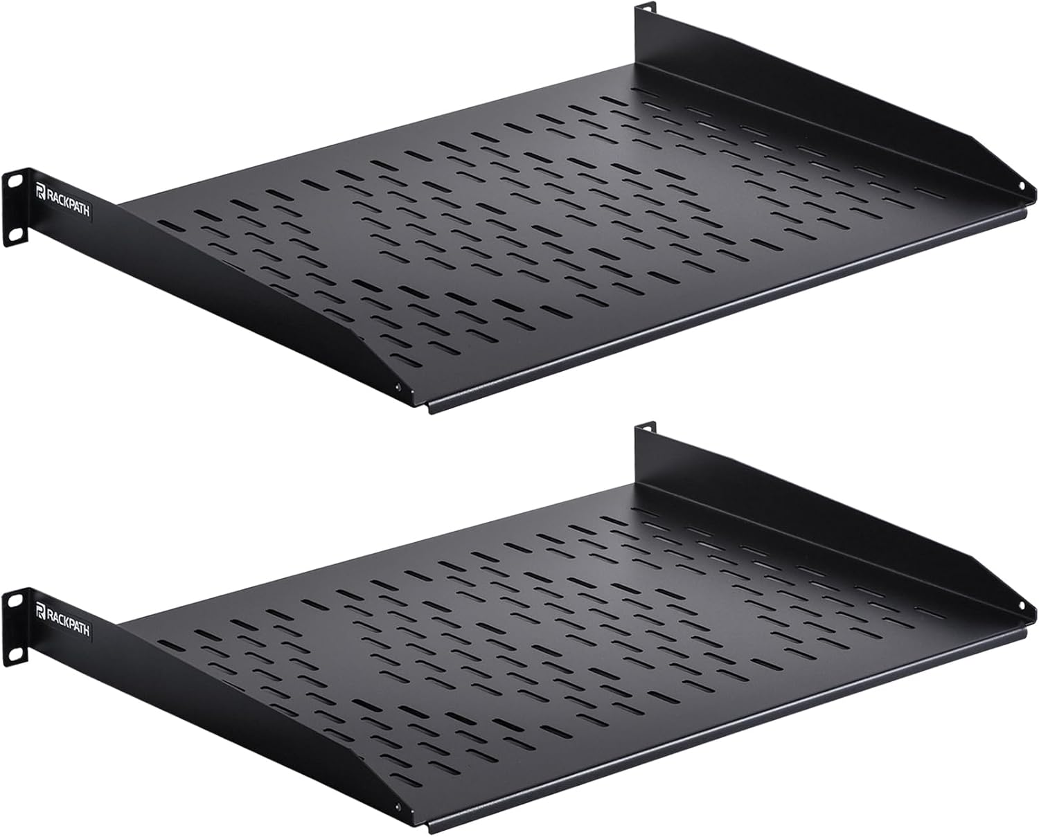 RackPath 1U Cantilever Universal Rack Shelf - 14in Deep – Rackmount Shelf for 19’’ AV/Network Equipment Racks – 55lbs Capacity - 2Pack