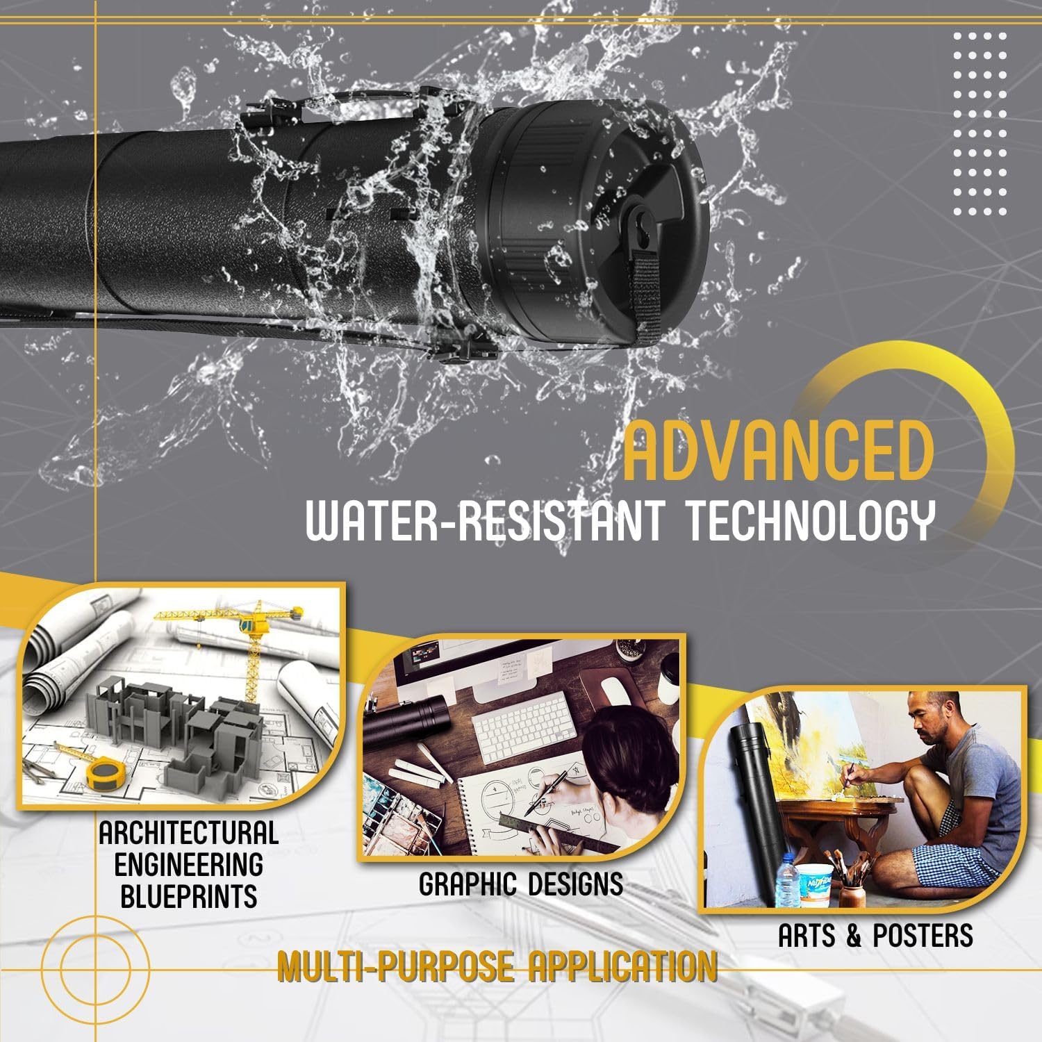 - Extendable (32" min -51.6" max) Length: The adjustable 6.5 Inch inside diameter poster tube including 10 locking positions provides large internal storage space and high flexibility for users. Great for storing drawings, maps, blueprints, engineering supplies, surveying equipments & more!
