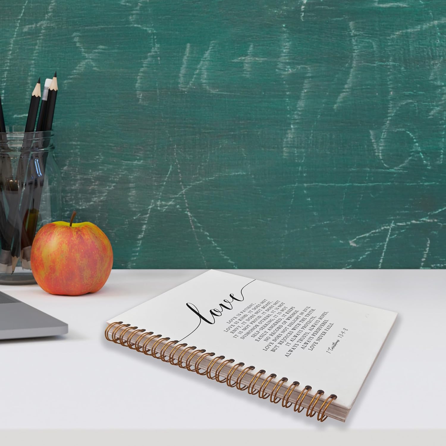 VNWEK Christian Notebook,Bible Journaling Notebook,Bible Journal,Church Notes Notebook,1 Corinthians 13:4-8 Love Never Fails Spiral Notebook Journal 5.5x8.3 Inch,Christian Journals for Women
