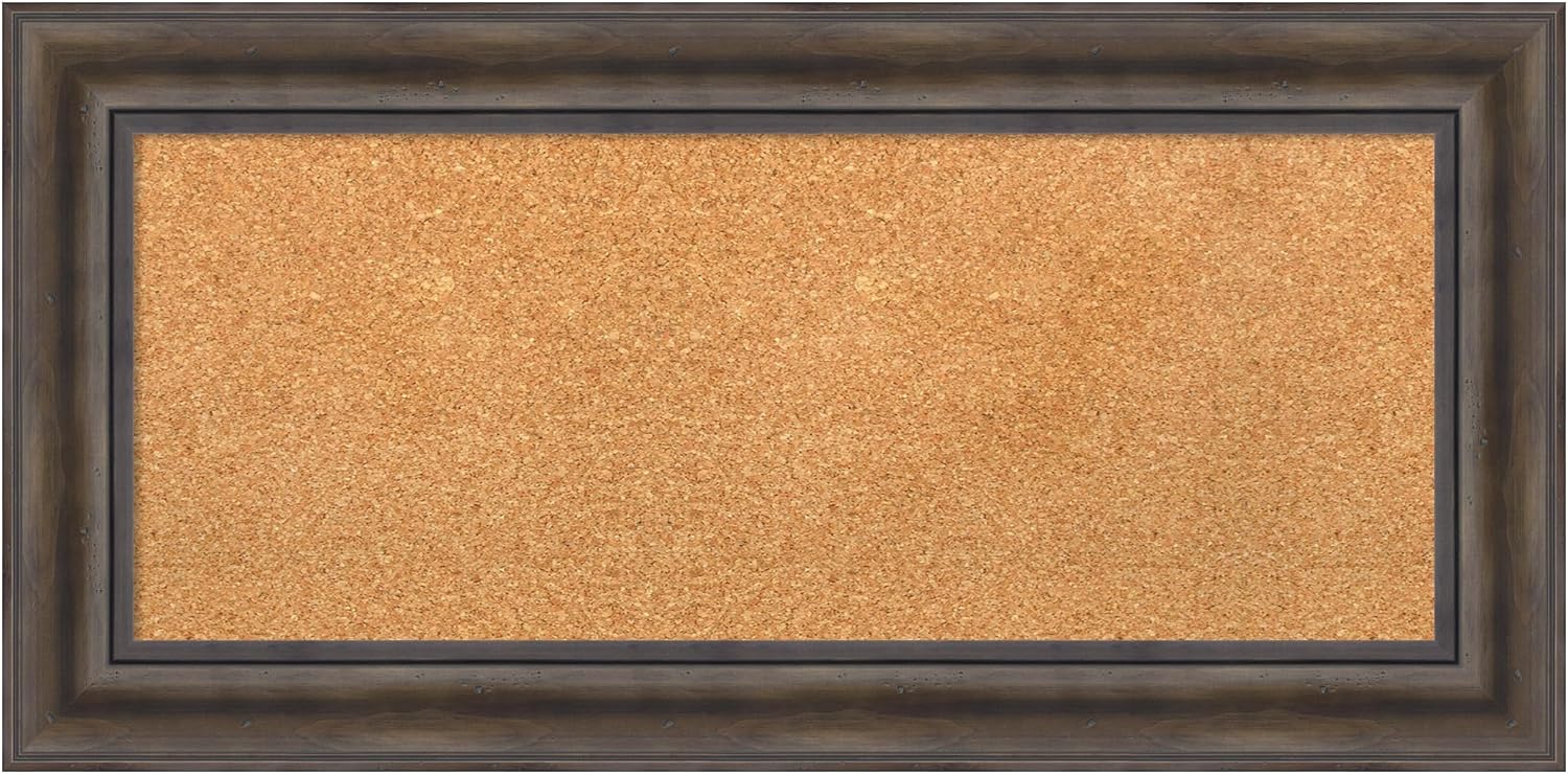 Amanti Art Natural Cork Board for Wall, 17x35 Vision Board with Brown Wood Frame, Medium Corkboard Office Decor for Home Organization, Country Rustic Corkboard Pinboard to Display Items for Home