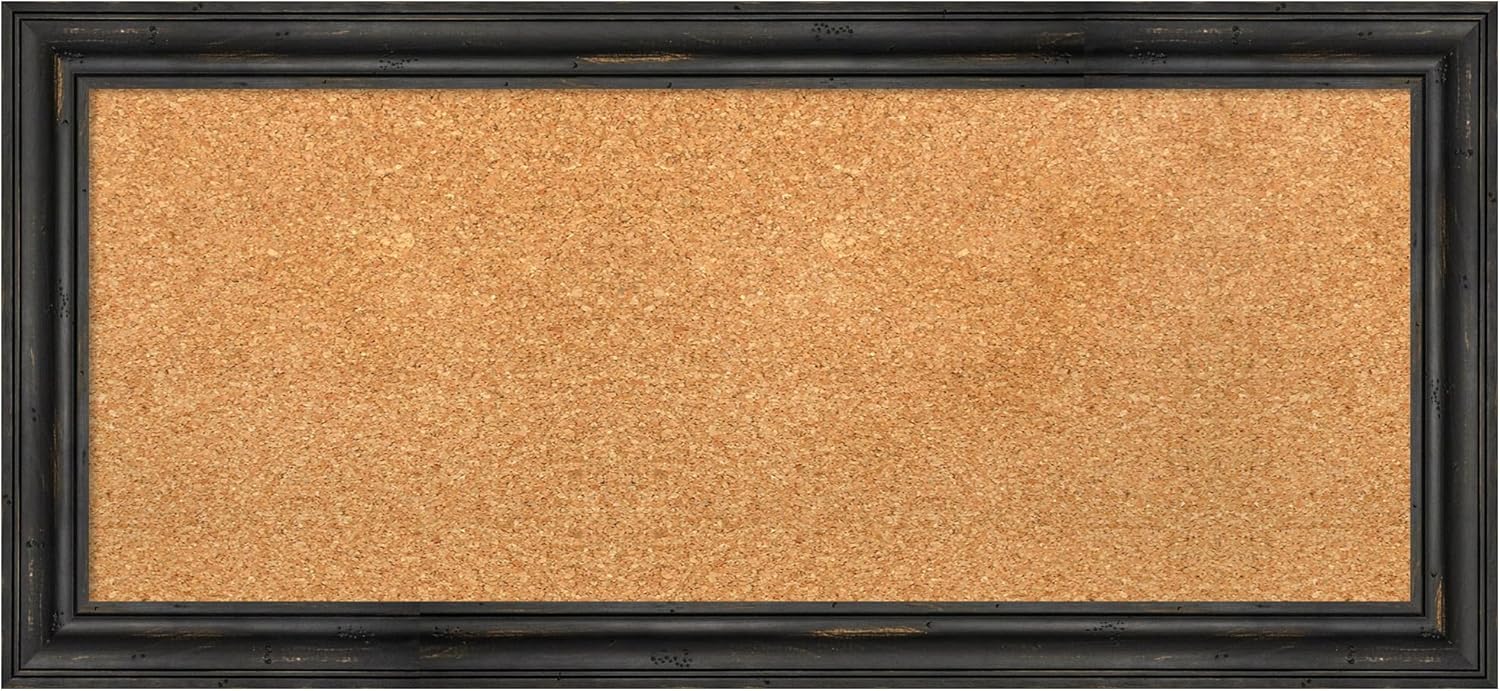 Amanti Art Natural Cork Board for Wall, 15x33 Vision Board with Black Wood Frame, Medium Corkboard Office Decor for Home Organization, Rustic Farmhouse Corkboard Pinboard to display items for home
