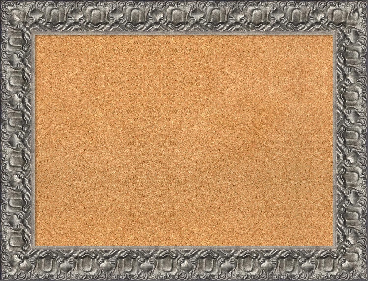 Amanti Art Natural Cork Board for Wall, 26x34 Vision Board with Silver Wood Frame, Medium Corkboard Office Decor for Home Organization, Traditional Corkboard Pinboard to display items for home