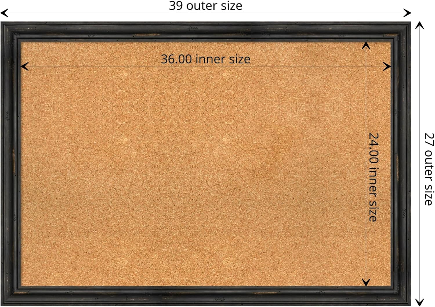 - DIMENSIONS: The overall size of this framed corkboard measures 39 in. x 27 in., including the frame. Its functional cork board area measures 36 in. x 24 in.