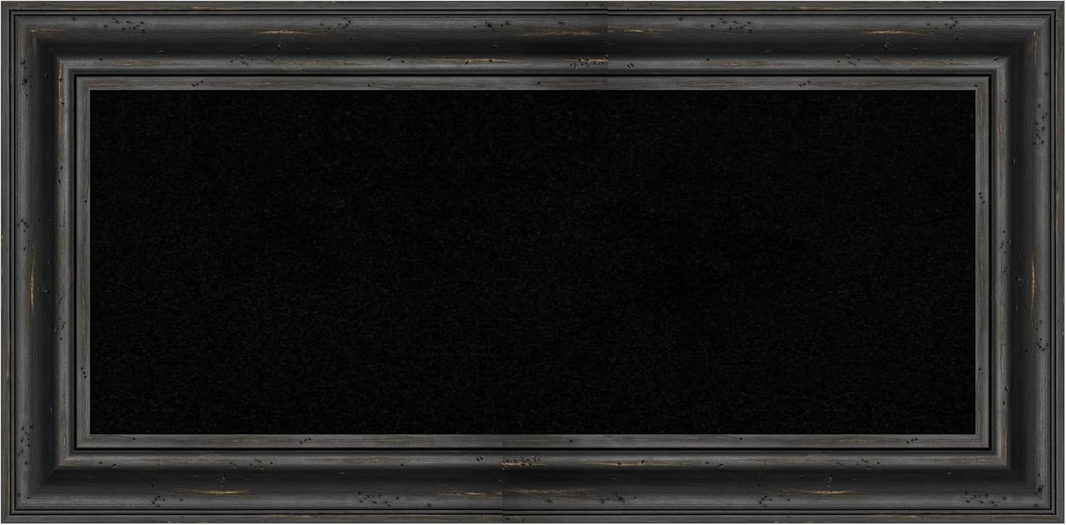 Amanti Art Black Cork Board for Wall, 17x35 Vision Board with Black Wood Frame, Medium Corkboard Office Decor for Home Organization, Country Rustic Corkboard Pinboard to Display Items for Home
