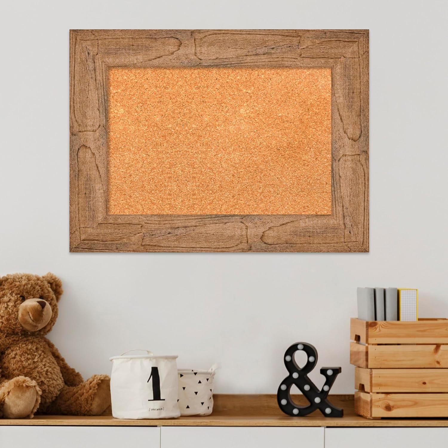 Amanti Art Natural Cork Board for Wall, 18x24 Vision Board with Brown Wood Frame, Small Corkboard Office Decor for Home Organization, Country Rustic Corkboard Pinboard to Display Items for Home