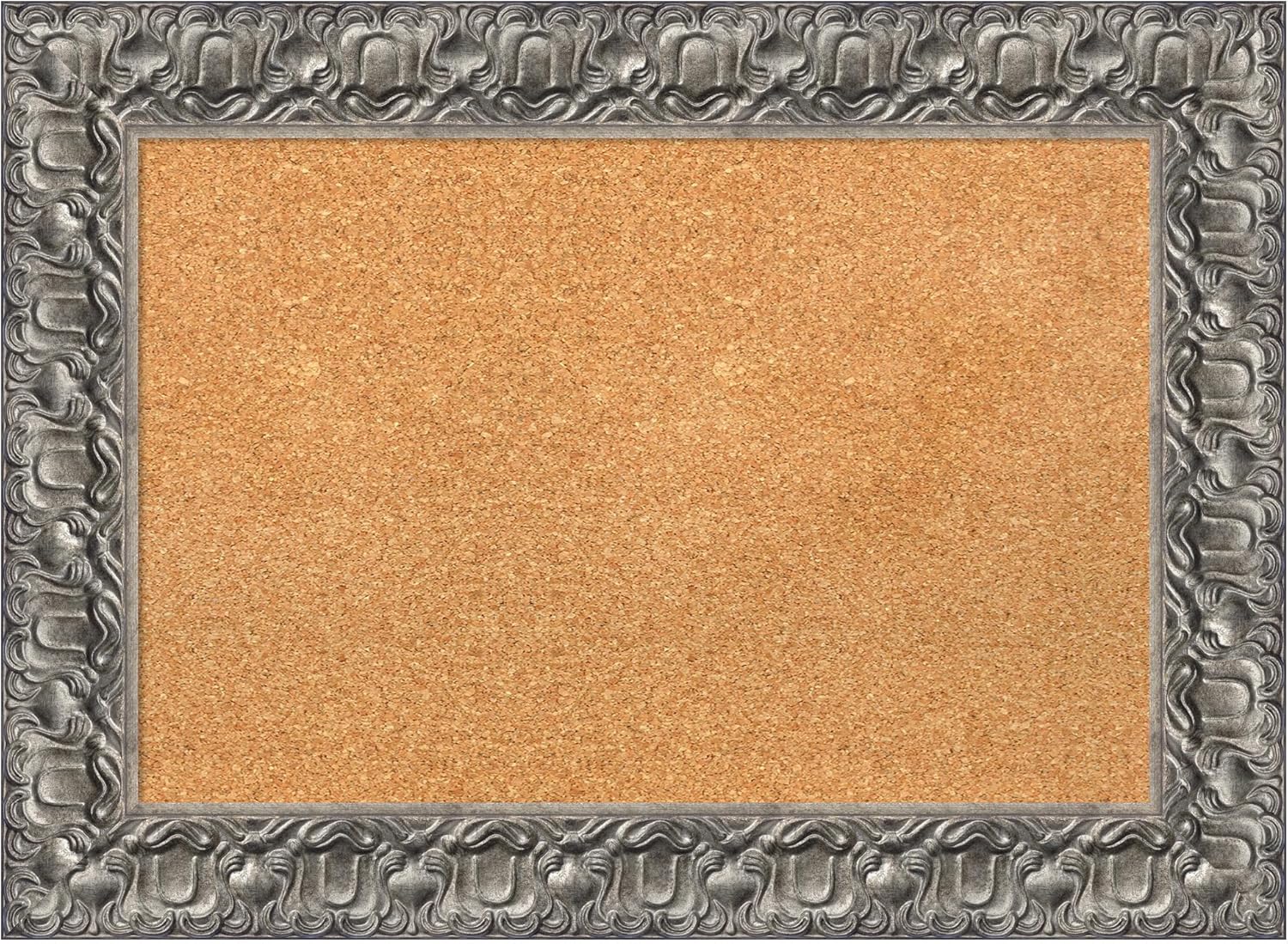 Amanti Art Natural Cork Board for Wall, 22x30 Vision Board with Silver Wood Frame, Medium Corkboard Office Decor for Home Organization, Traditional Corkboard Pinboard to Display Items for Home