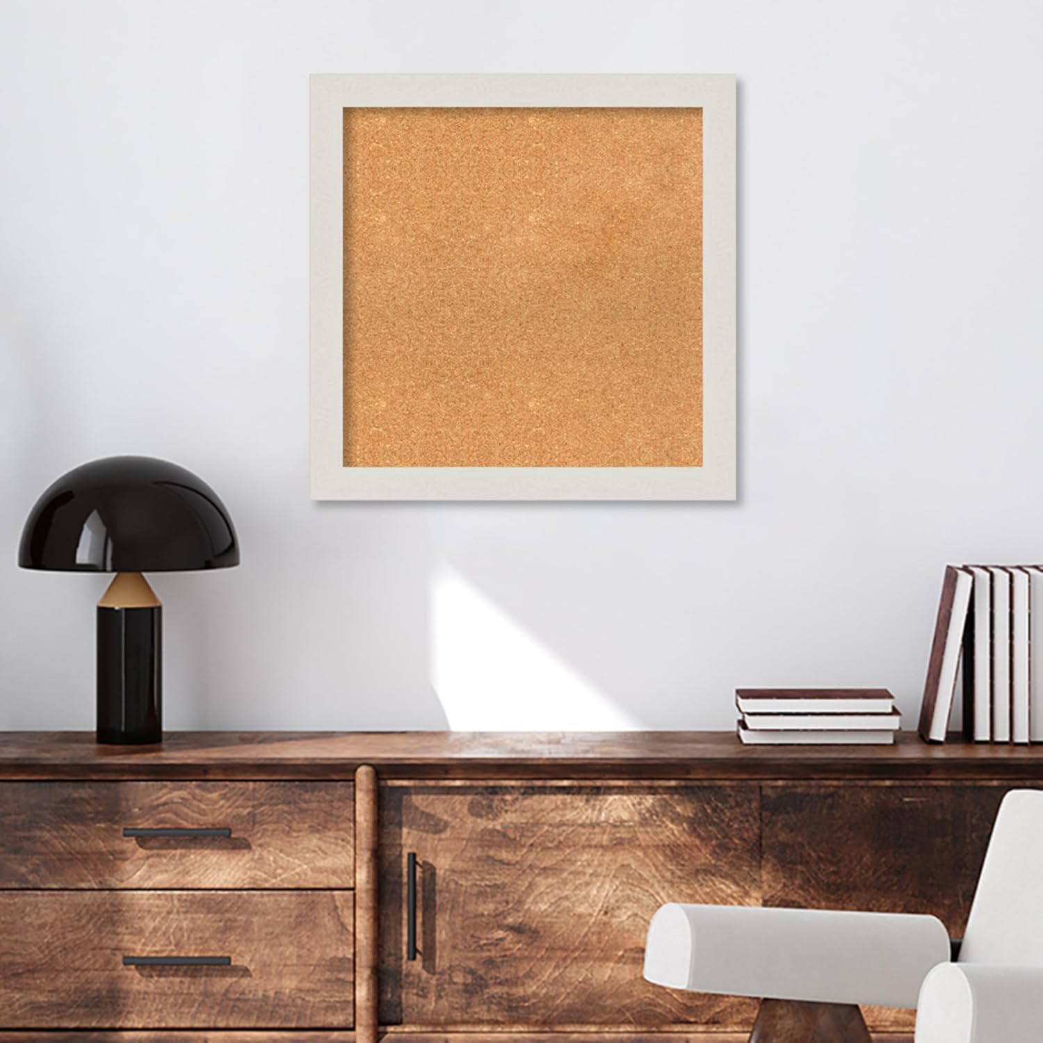Amanti Art Natural Cork Board for Wall, 25x25 Vision Board with White Frame, Medium Corkboard Office Decor for Home Organization, Country Rustic Corkboard Pinboard to Display Items for Home