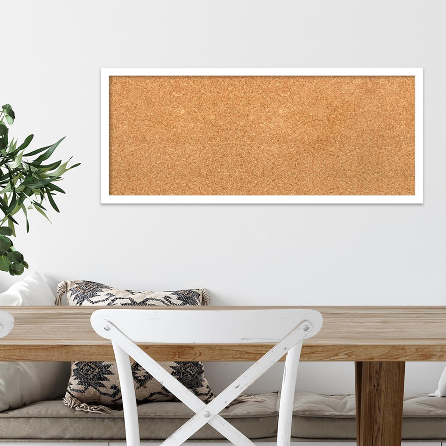 Amanti Art Natural Cork Board for Wall, 13x31 Vision Board with White Frame, Medium Corkboard Office Decor for Home Organization, Modern Corkboard Pinboard to Display Items for Home Organization in