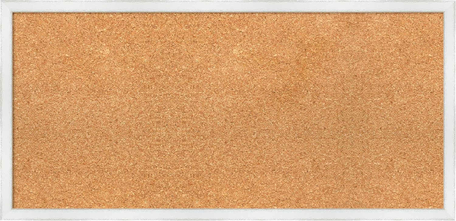 Amanti Art Natural Cork Board for Wall, 15x31 Vision Board with White Frame, Medium Corkboard Office Decor for Home Organization, Country Rustic Corkboard Pinboard to Display Items for Home