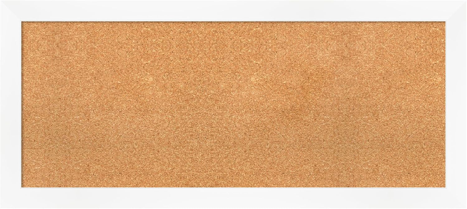 Amanti Art Natural Cork Board for Wall, 19x43 Vision Board with White Frame, Large Corkboard Office Decor for Home Organization, Modern Corkboard Pinboard to Display Items for Home Organization in