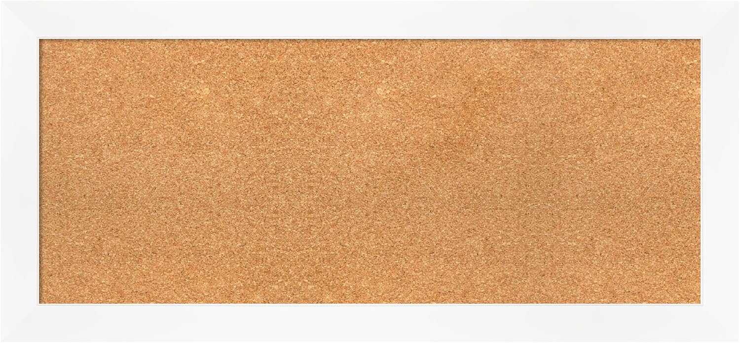 Amanti Art Natural Cork Board for Wall, 17x37 Vision Board with White Frame, Medium Corkboard Office Decor for Home Organization, Modern Corkboard Pinboard to Display Items for Home Organization in