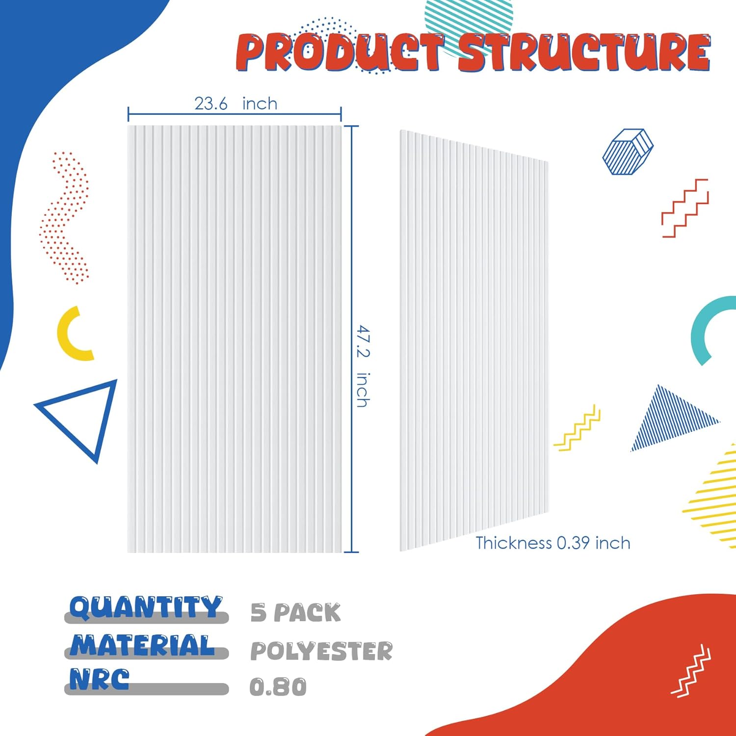 5 Pack Acoustic Panels,47.2x23.6x0.4 inch Acoustic Wall Panels,Large Soundproof Panels,Self-Adhesive Sound Proof Panels for Walls,Acoustic Treatment for Recording Studio&Office,White