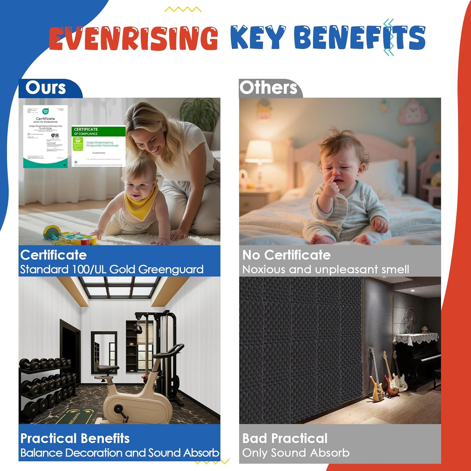 - 😟【WIDELY USE】 This large sound absorbing panels can well absorb the echo and noise,Effectively improve your sound environment and quality.such as home studios, gyms, game rooms, computer rooms, video shooting venues, rehearsal rooms, concert halls, recording studios, schools, conference rooms, Home theater, office,and more.