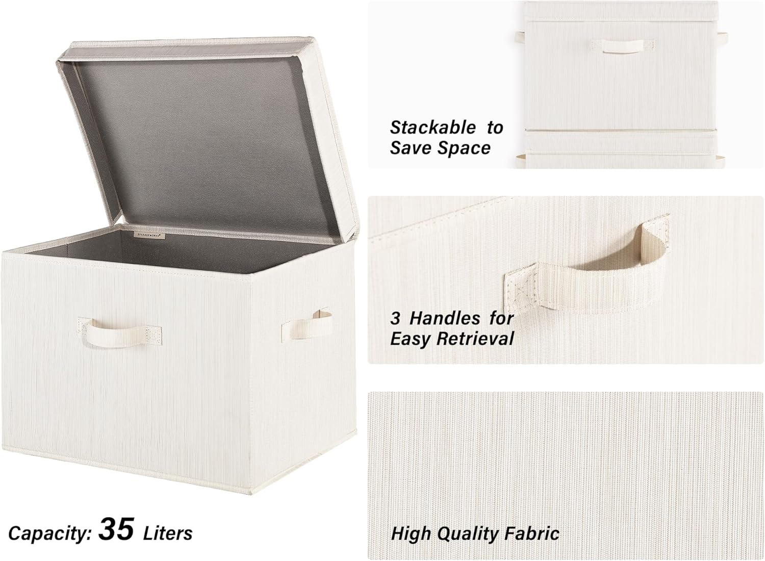 StorageWorks Closet Storage Bin with Lids, Decorative Storage Boxes with Handles, Fabric Storage Bins for Clothes, Jumbo, Mixing of Beige, White & Ivory, 2-Pack