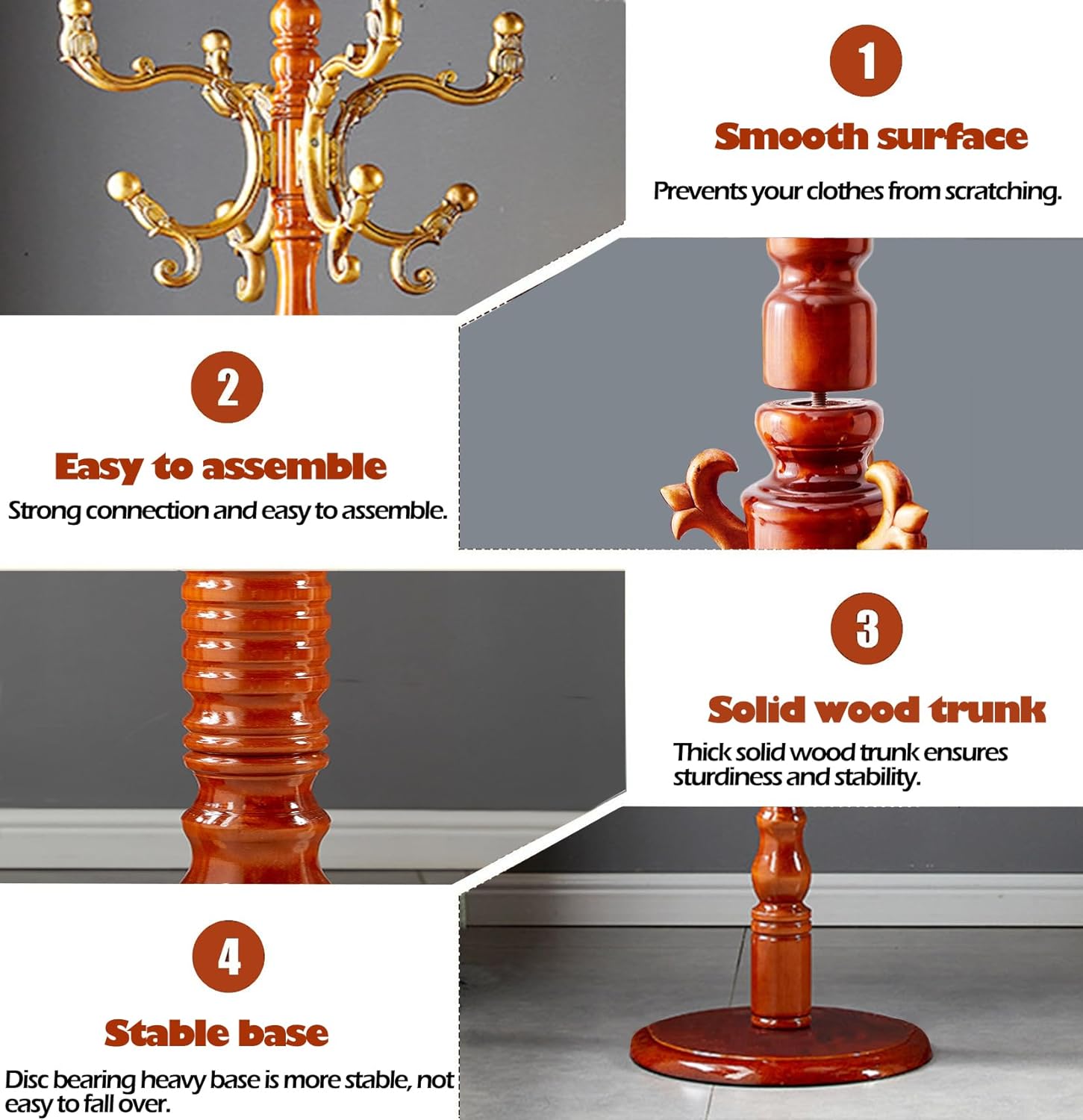 - PROCESS MATERIAL SAFETY: Our coat rack wood is made of natural solid wood and multiple polishing techniques, carefully crafted by veteran artisans, coated with eco-friendly paints, and the overall shape is vintage and generous, which will bring you an ultra-sturdy and durable coat rack for your healthy life!