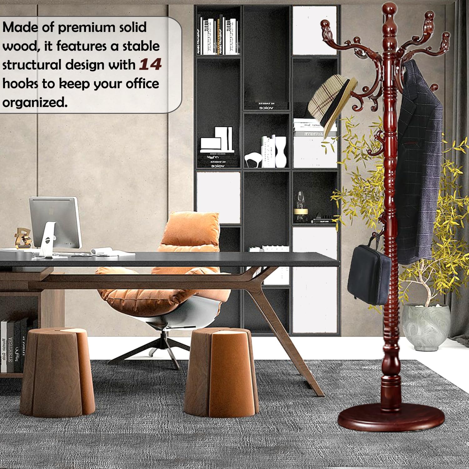 Coat Racks Free Standing with 14 Hooks, Natural Wood Coat Stands for Entryway, Adjustable Height 73 in Tree Coat Rack Stand for Hallway Home Office Bedroom (Mahogany)