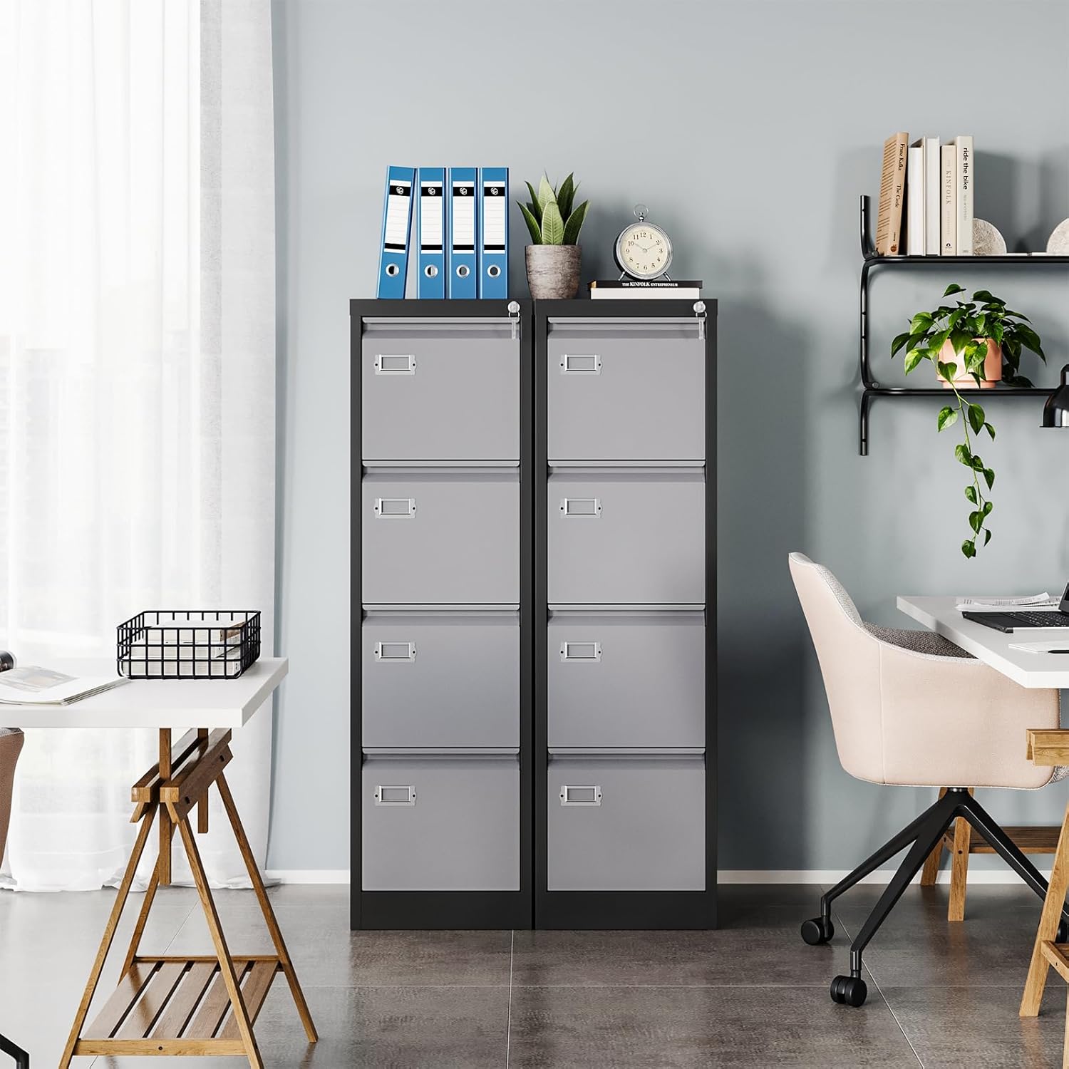 MIIIKO 4 Drawer File Cabinet, Metal Vertical Filing Cabinets with Lock, Home Office File Folders Storage Cabinet for Letter Legal A4 File Size