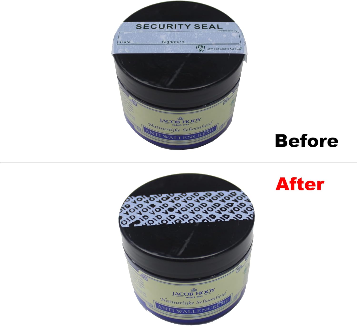 - ăNo Waiting Period to Reveal âVoidâ ă: Security hidden messages (e.g. "VOID/OPEN") will appear in A FEW SECONDS immediately if attempts are made at removal of tamper proof sticker, while other security seal sticker usually needed at least a few minutes to reveal "void".