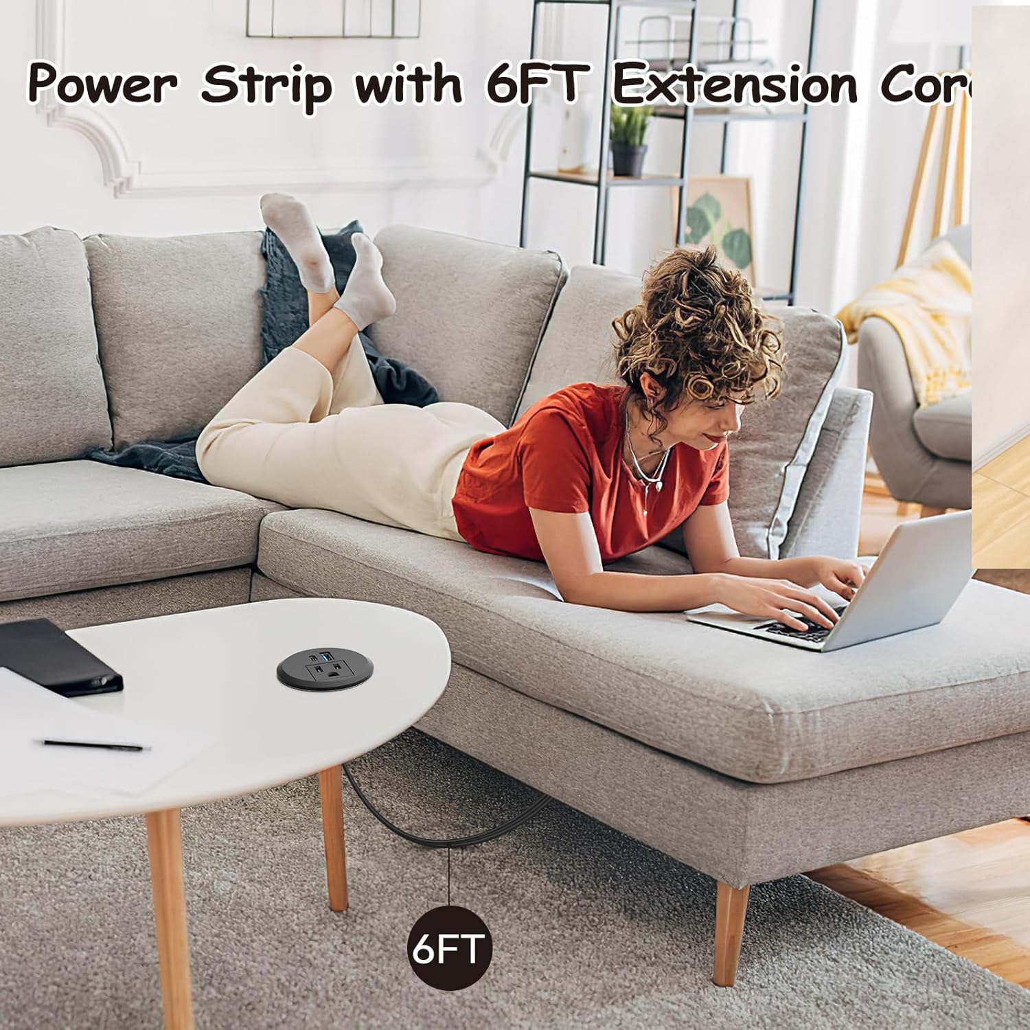 - 【Power strip 6FT】This 6FT power strip is very thin and has better current carrying capacity which can easily hide behind a sofa, bed, nightstand, or other furniture. The cover on the power desk grommet back allows this power strip to be securely installed in various applications.