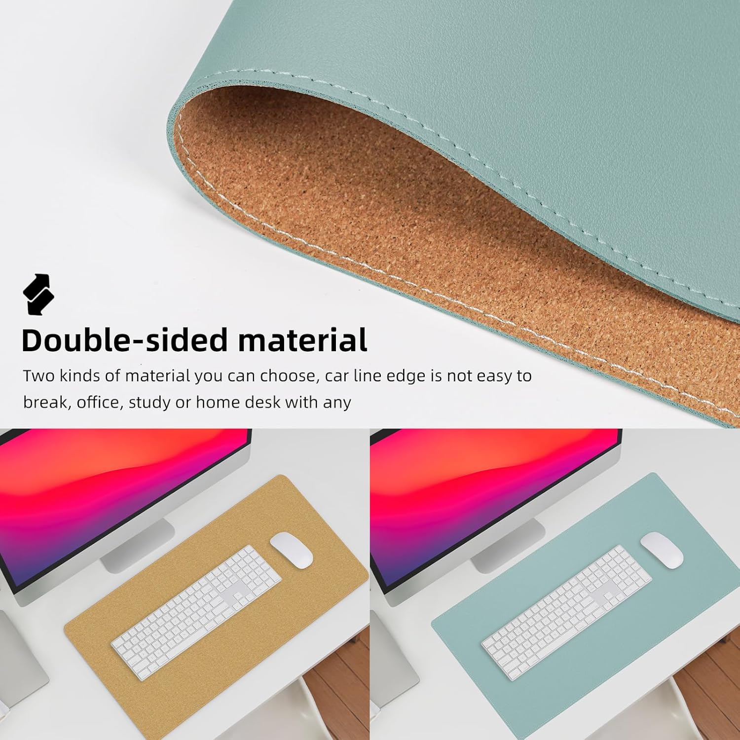 - Elevate Your Workspace: Our reversible desk pad is designed to complement any office or home desk with its premium materials and elegant black thread stitching. The natural cork base provides extra grip to keep your desk mat in place.