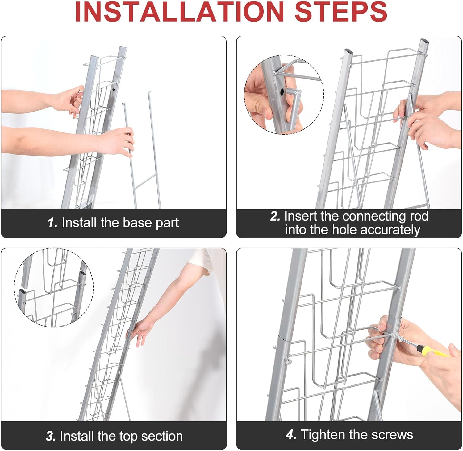- Durable and Stylish: Crafted from carbon steel material, this magazine display rack is durable and long-lasting, non-deforming. Its paint surface is sleek and shiny, giving it a modern and stylish appearance that suits any decor style.
