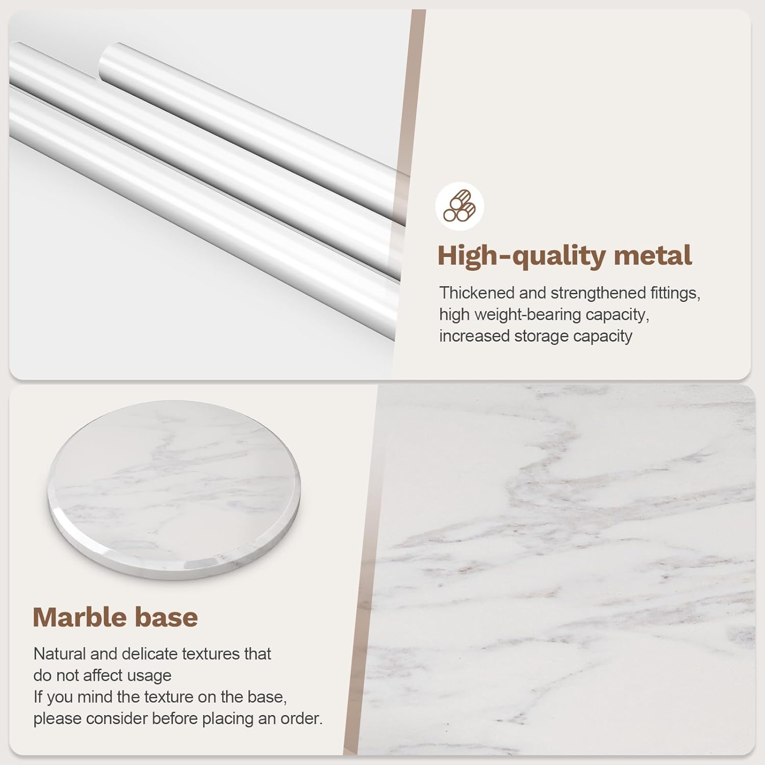 - Marble Base: A stable base is the key of the whole coat tree. Vilaxing coat rack base stand is made of natural marble with smooth surface and clear grain. The material has a high hardness and is sturdy and stable enough to support about 100 pounds of weight. The bottom also comes with a non-slip circular pad to avoid wobbling or tip over