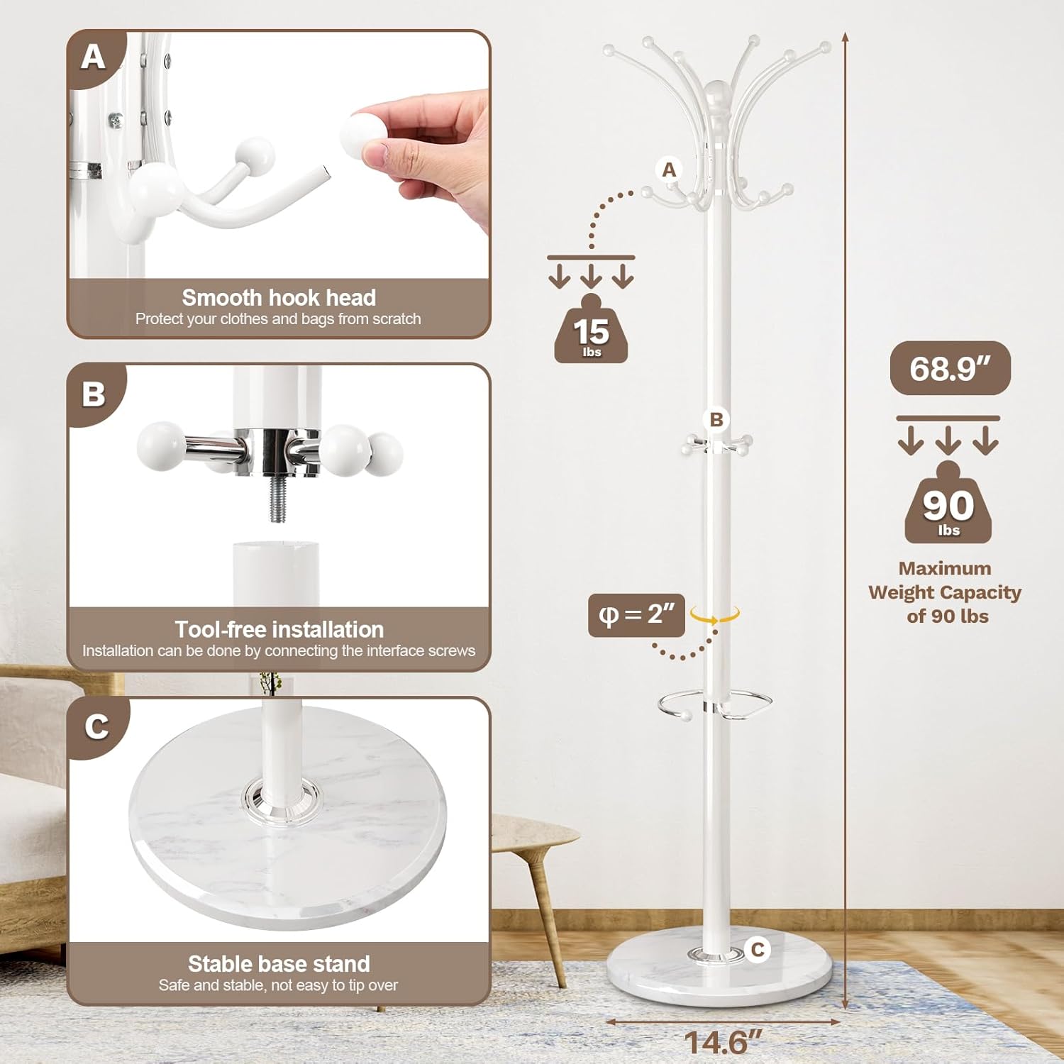 - Easy to Assemble: The coat tree stand can be easily installed according to the instructions. If you have any questions, please contact us, we strive to make every customer enjoy satisfactory service