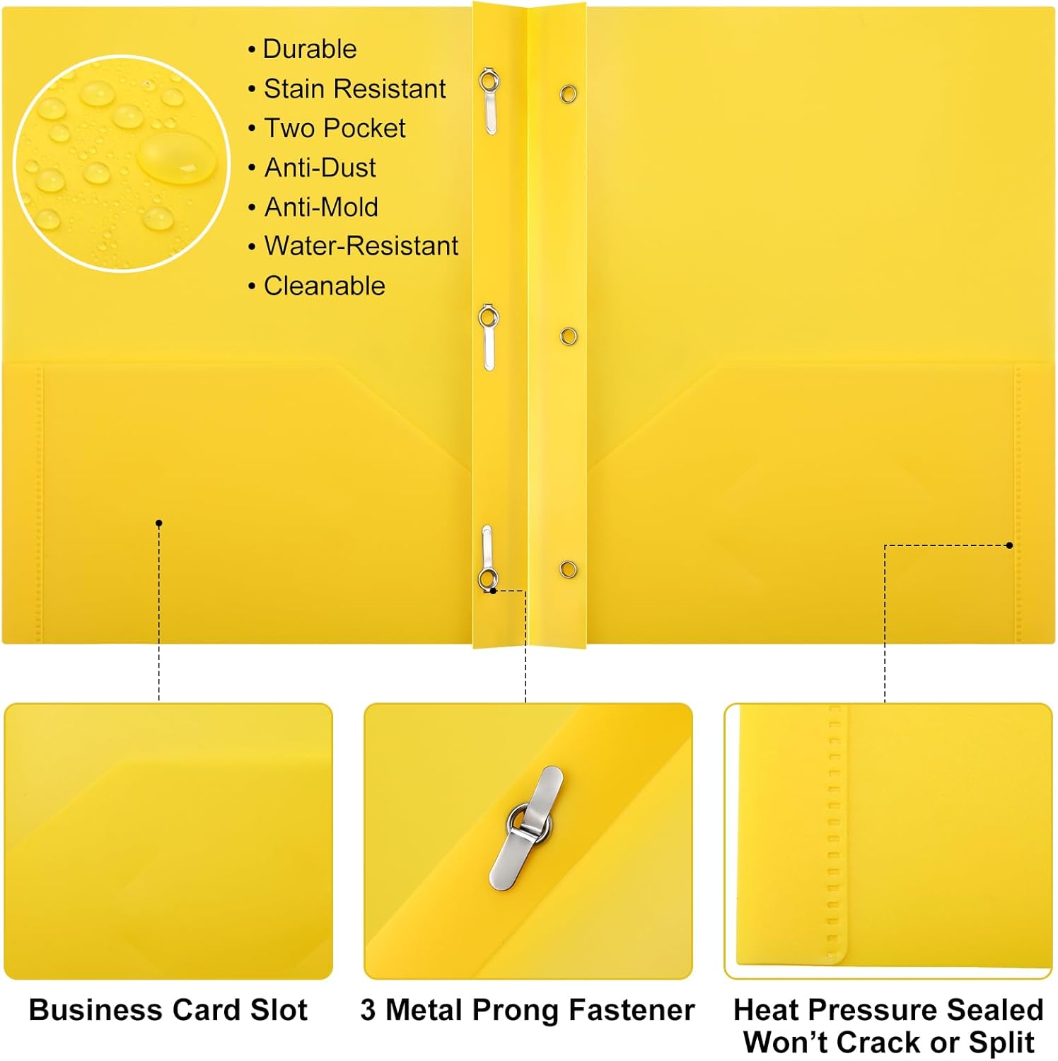 Patelai 48 Pcs Plastic Folders with 2 Pockets and 3 Prongs Home Folders with Card Slot Letter Size Heavy Duty Report Covers for Back to School(Yellow,Classic)