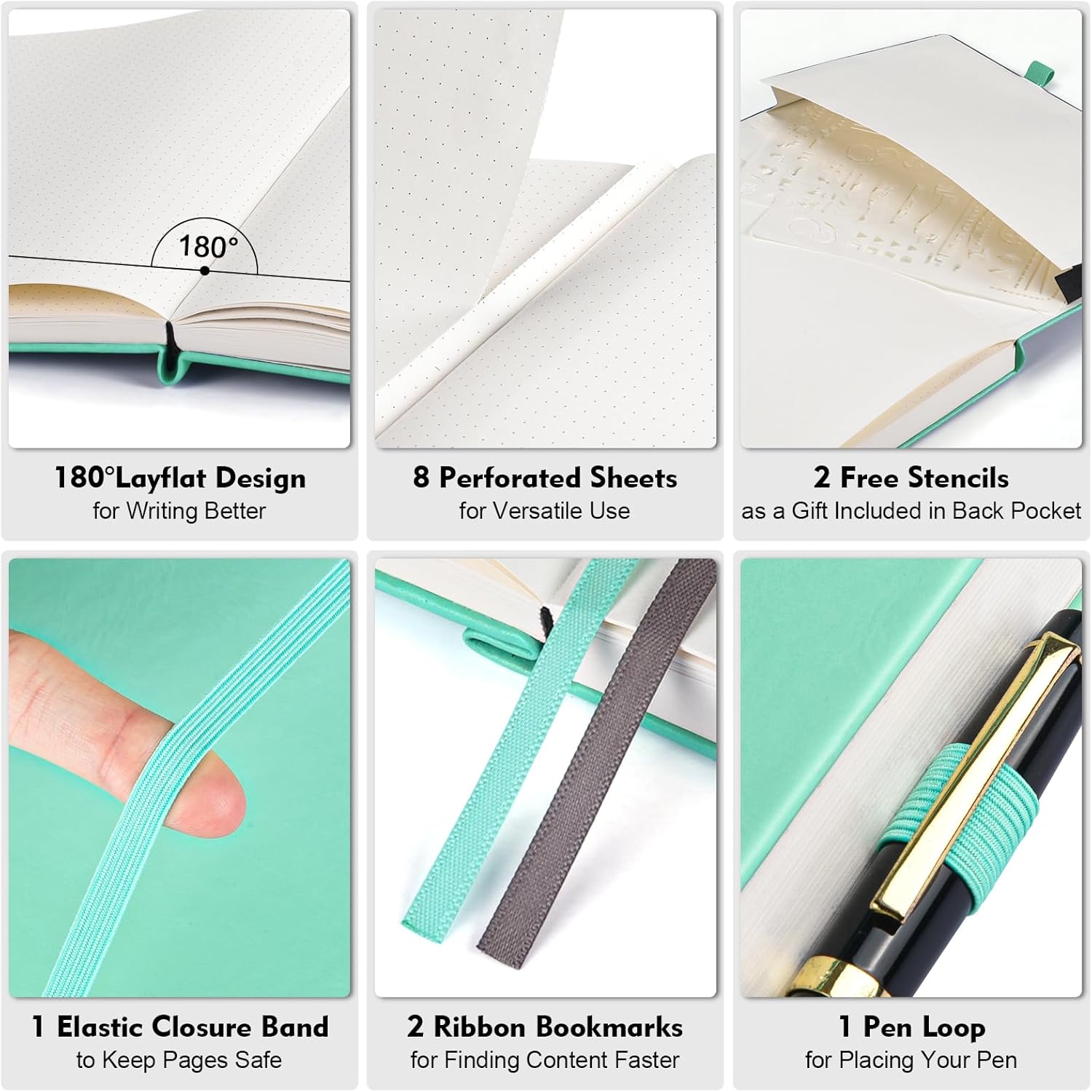 - 【User-Centered Design】❶ Add 2 subtle markers on the pages to assist with QUICK PAGE LAYOUT, allowing you to easily locate the center of rows and columns without counting every time; ❷ Include all the essential features of a perfect dot grid journal, such as 8 perforated sheets, 2 bookmarks, elastic closure band, pen holder, and back pocket; ❸ BONUS - 2 stencils are being gifted to you to create your ideal bullet point journal.