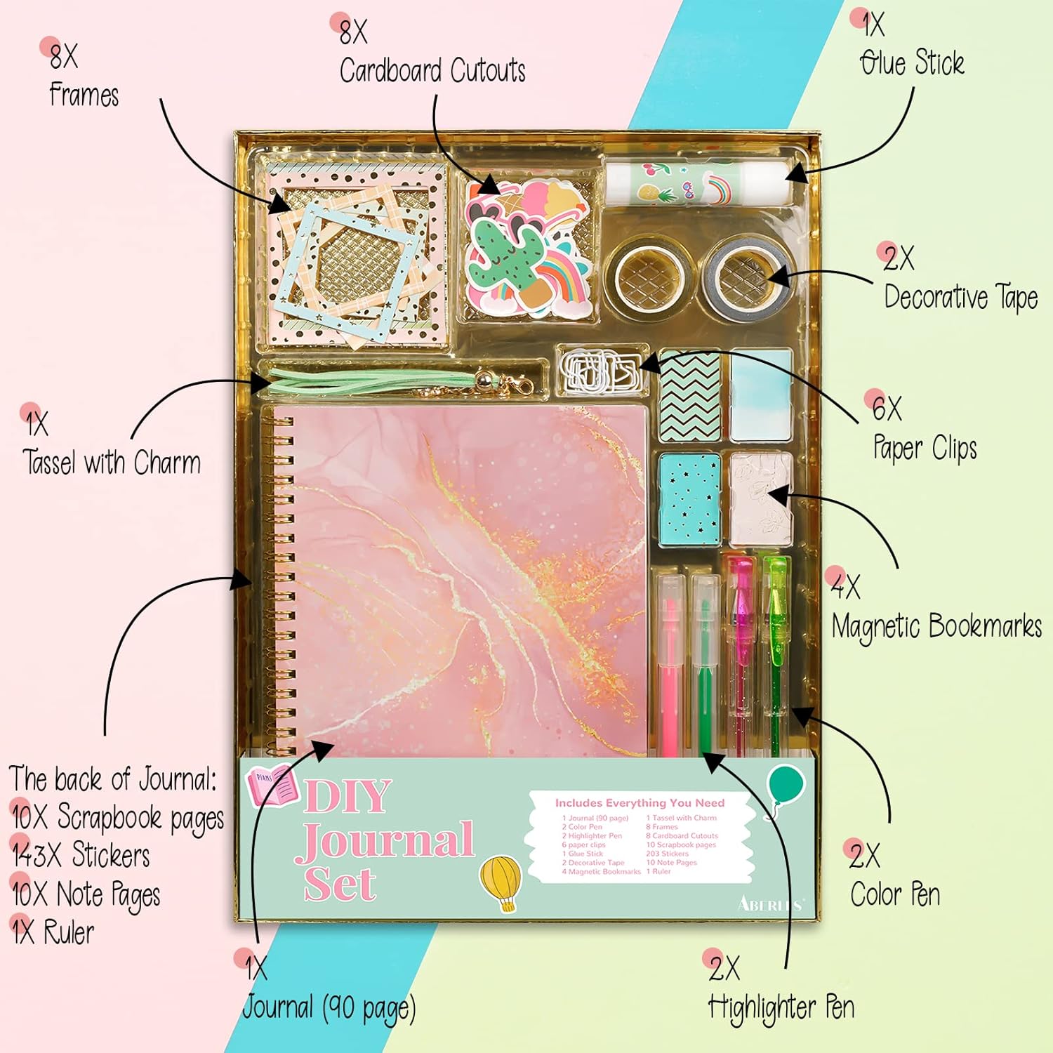 Gifts for Girls Age of 8 9 10 11 12 13 Years Old and Up, DIY Journal Set, Personalized Diary Stuff for Tweens Teens, Decorate Your Planner/Organizer, Journaling Arts Craft Kit. Ideal Toy Age 6-8