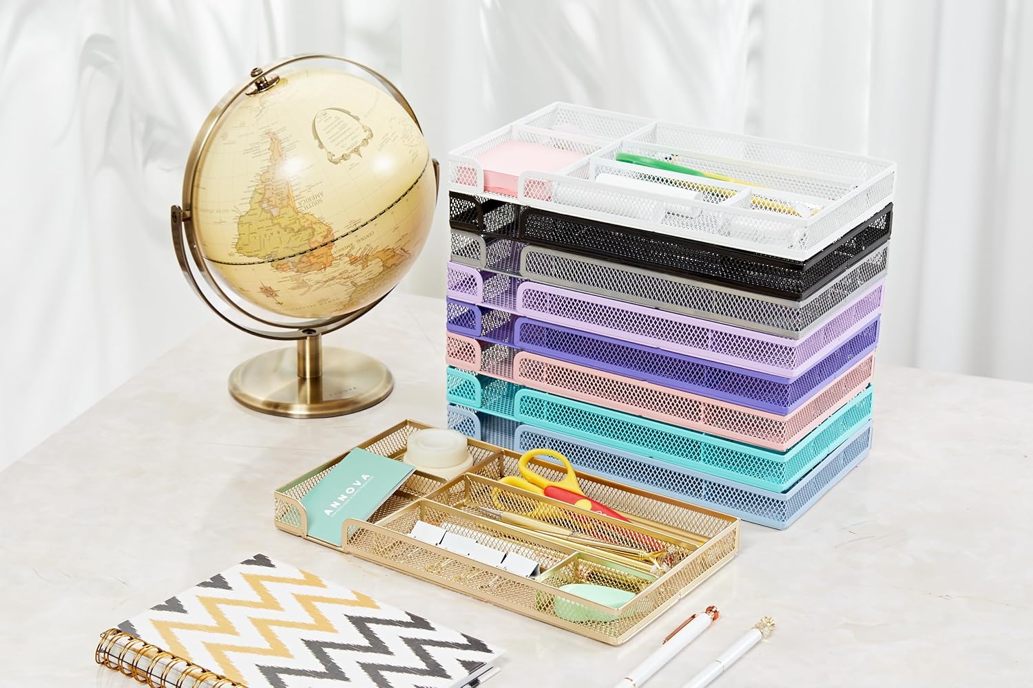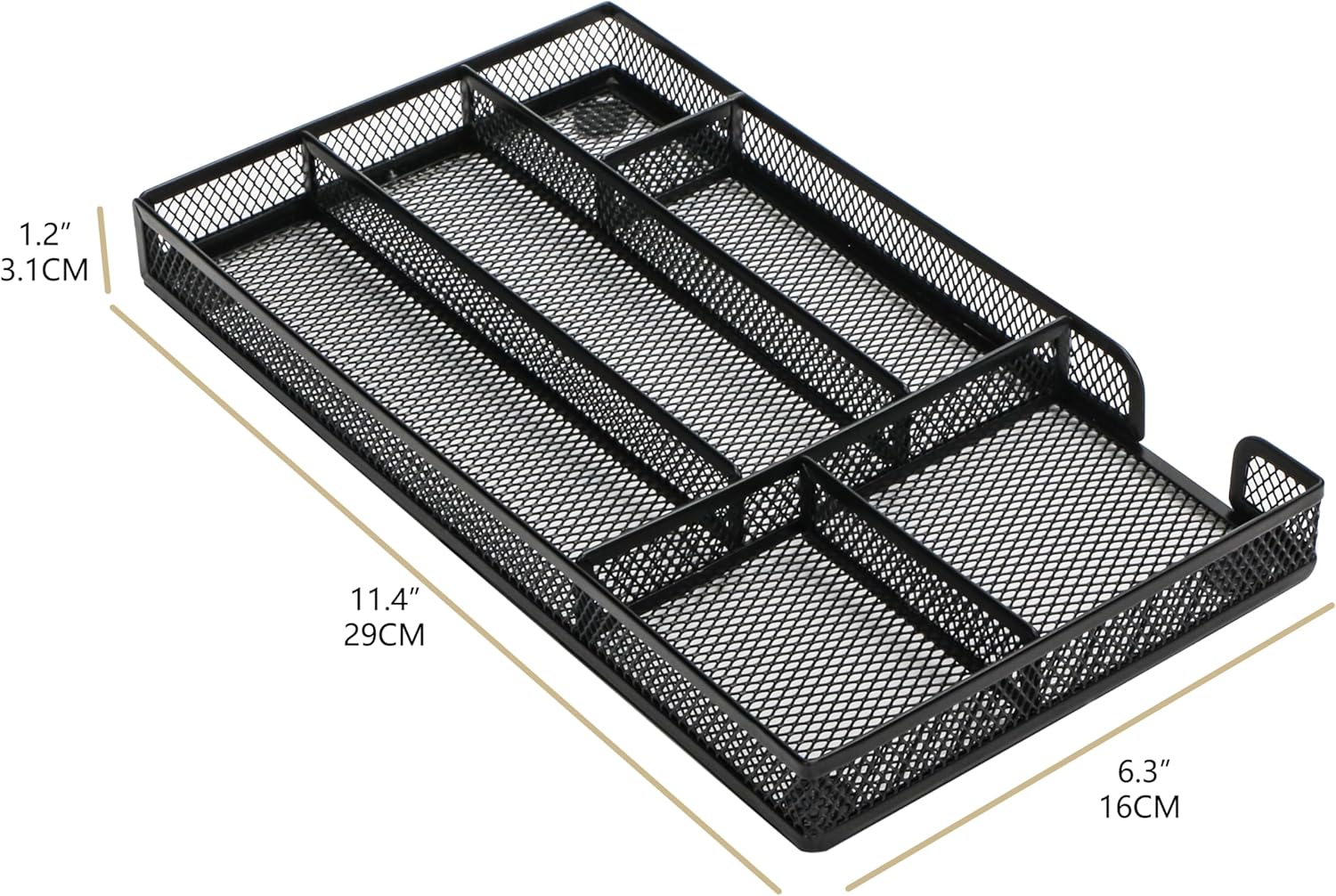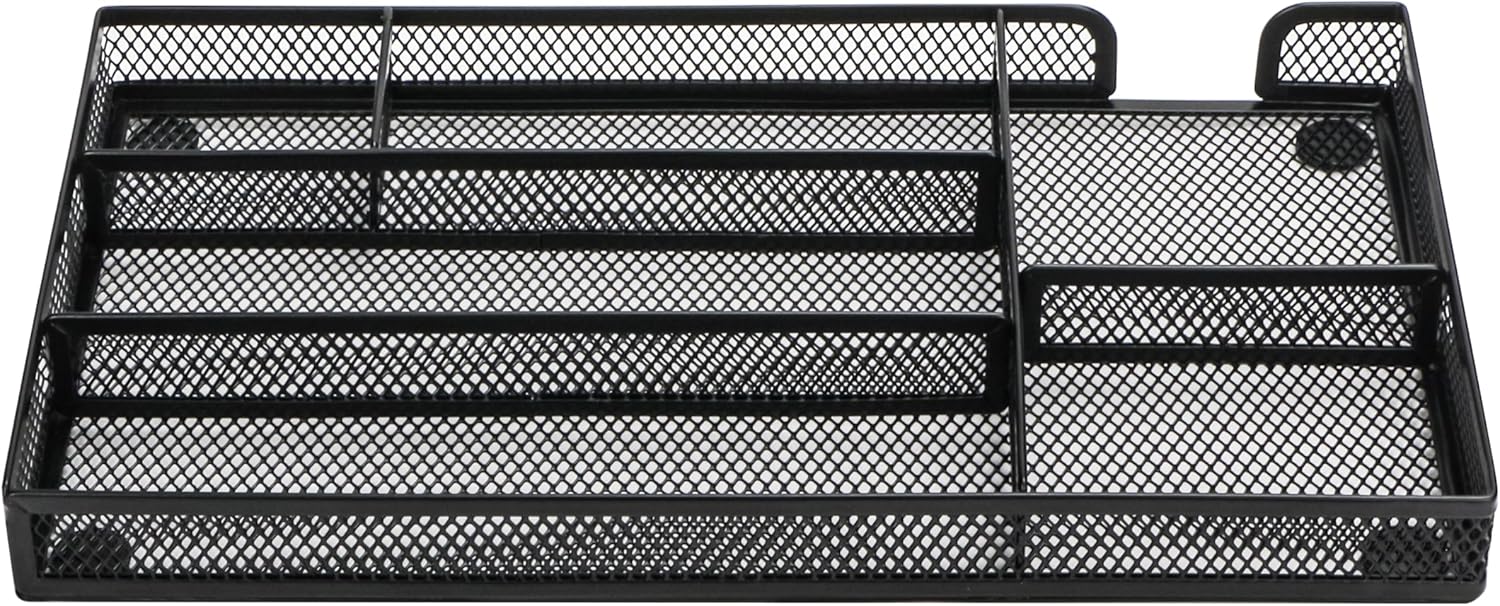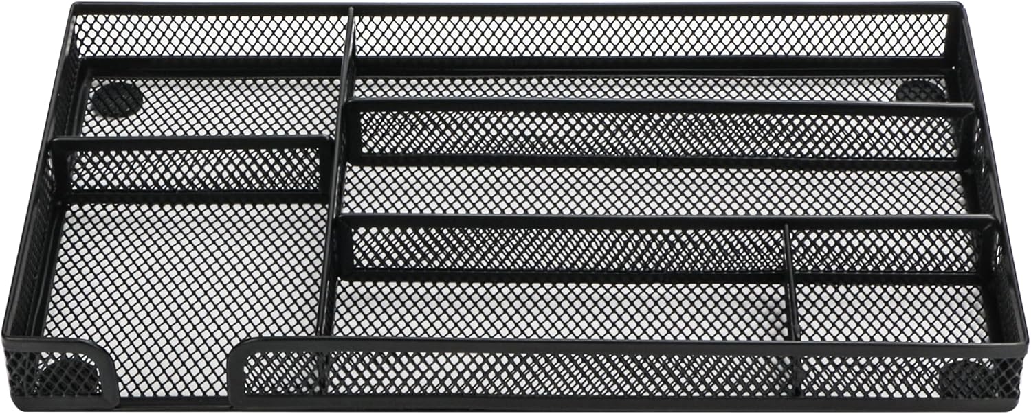 Annova Desk Drawer Organizer Tray for Office Organization - Metal Mesh - Storage Tray with Dividers for Pens, Desktop Accessories, Bathroom, Kitchen, Makeup and Office Supplies (Small, Black)