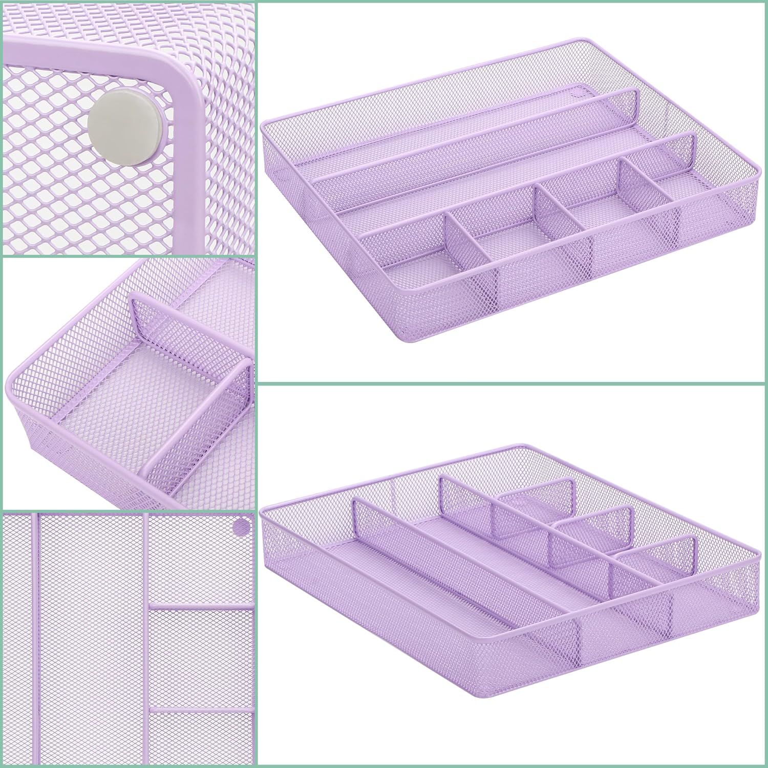 Annova Desk Top Organizer/Storage Tray - Metal Mesh with Dividers for Pens, Desktop Accessories, Bathroom, Kitchen, Makeup and Office Supplies (Large, Light Purple)