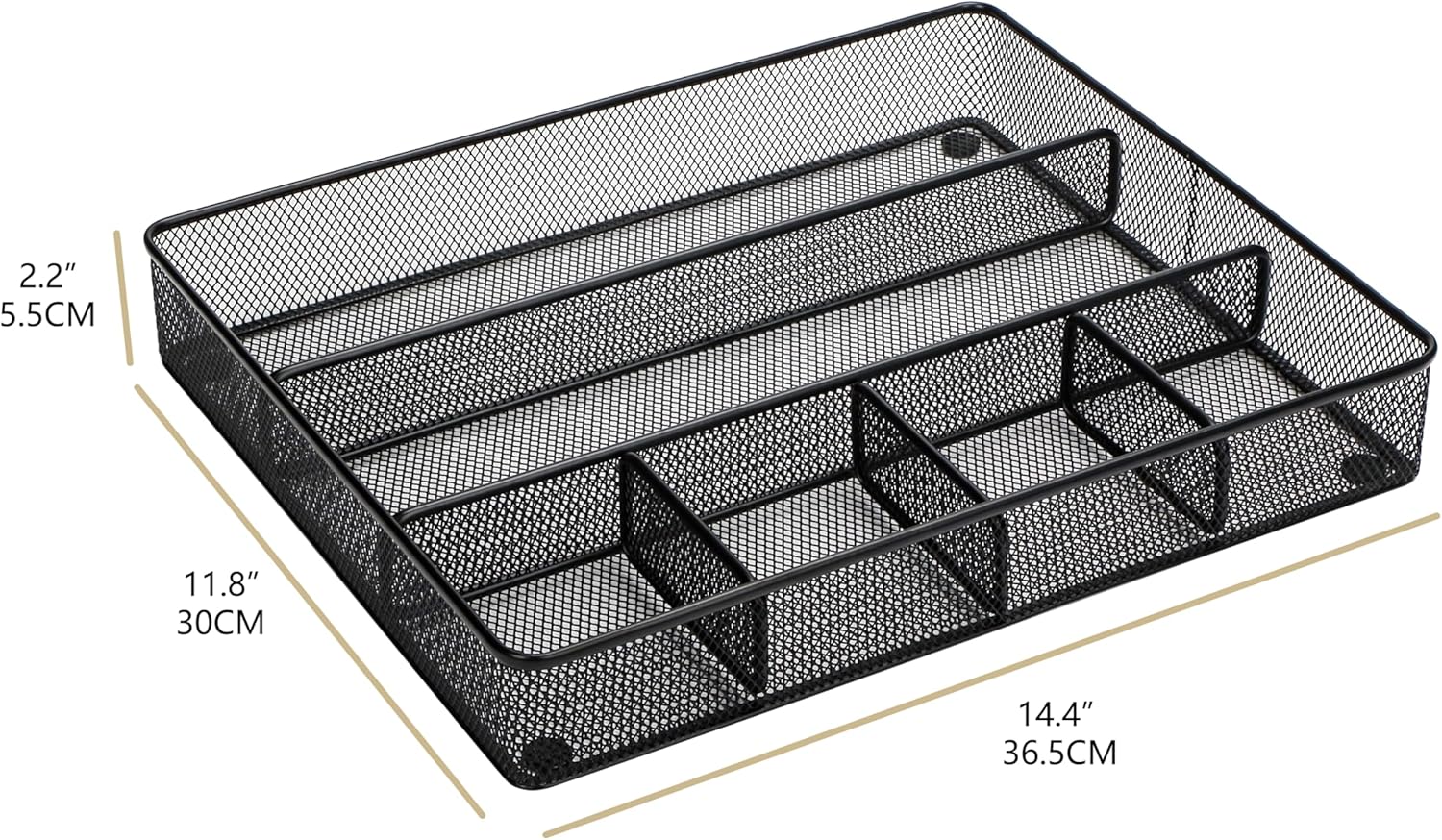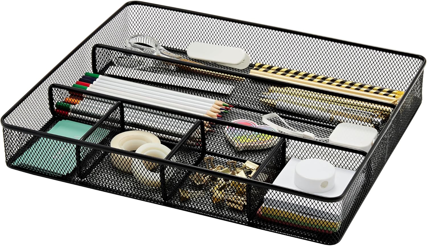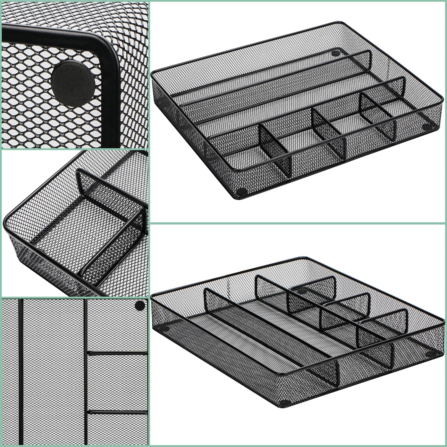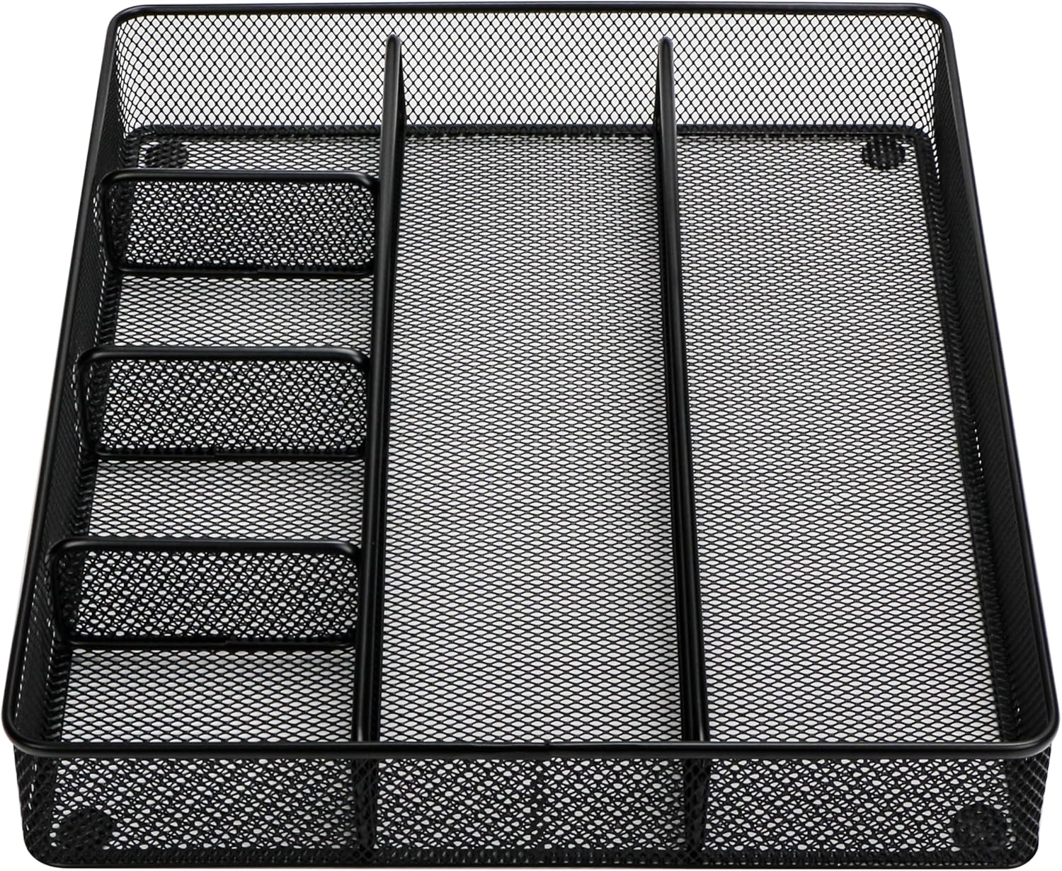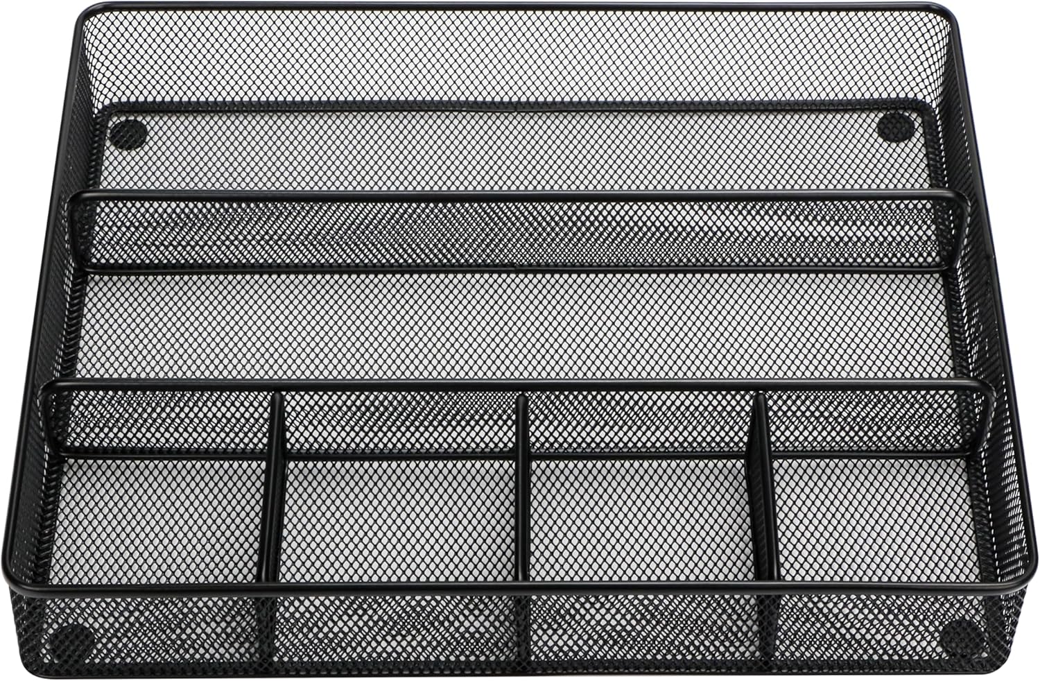 Annova Desk Top Organizer Tray for Office Organization - Metal Mesh - Storage Tray with Dividers for Pens, Desktop Accessories, Bathroom, Kitchen, Makeup and Office Supplies (Large, Black)