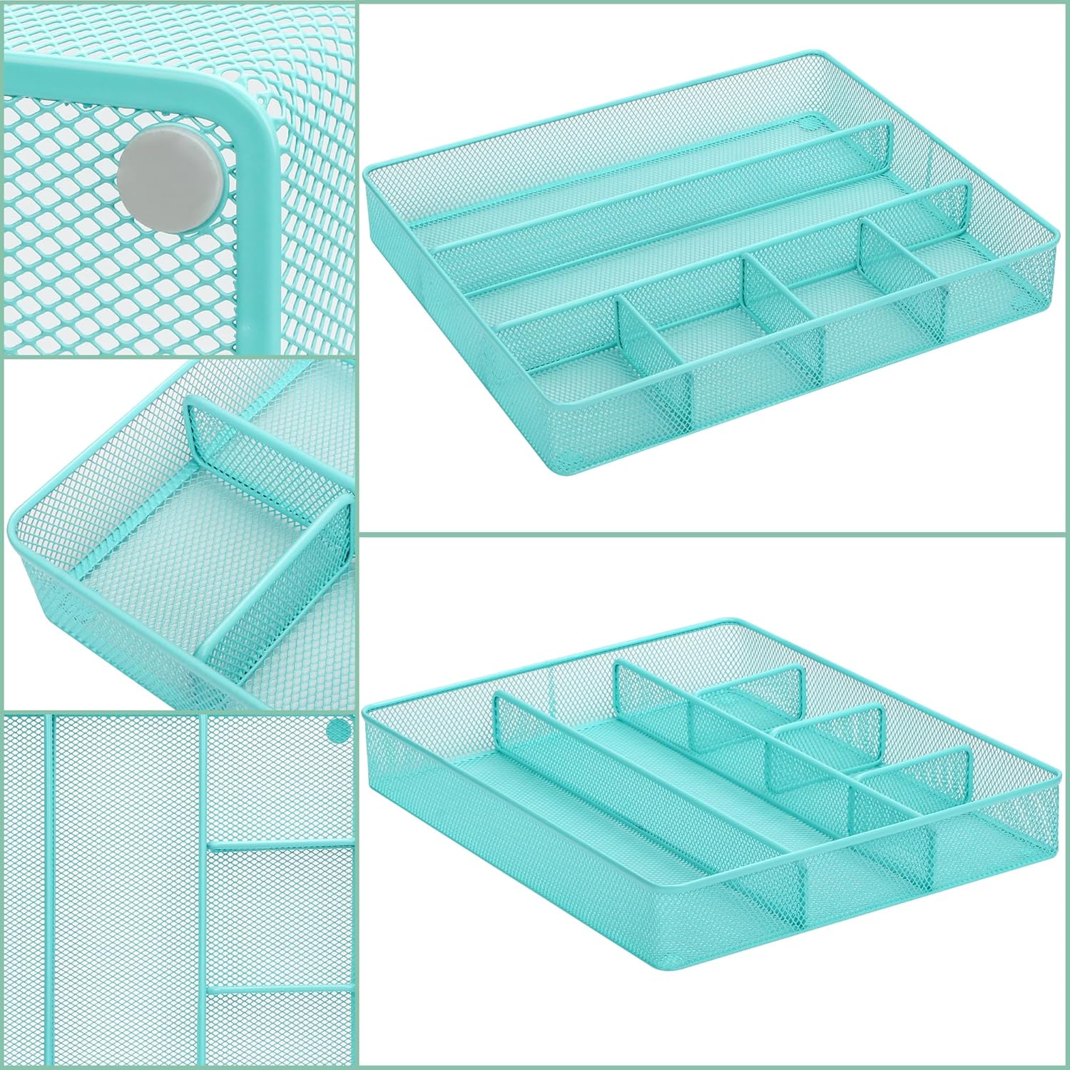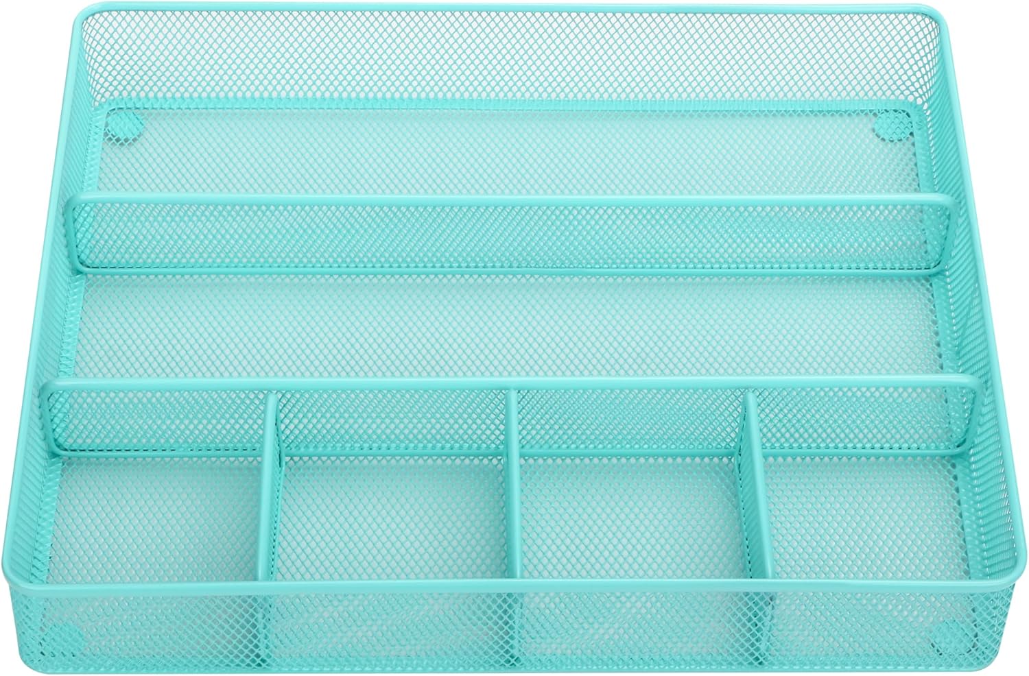 Annova Desk Top Organizer Tray for Office Organization - Metal Mesh - Storage Tray with Dividers for Pens, Desktop Accessories, Bathroom, Kitchen, Makeup and Office Supplies (Large, Turquoise)