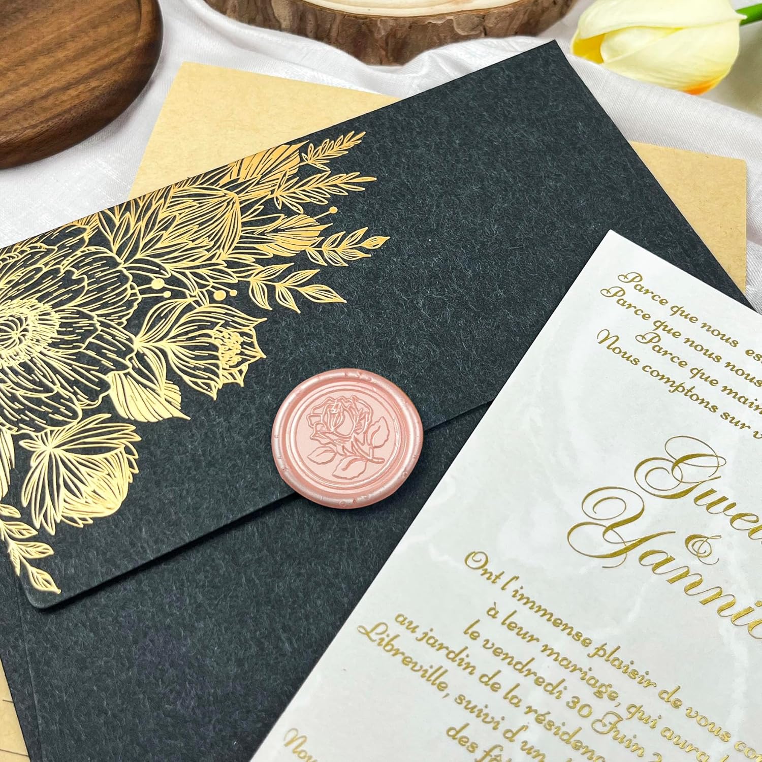 - QUALITY MATERIALS: Wax seal stickers are all made of high quality flexible wax, safe, tasteless, not easy to fade, waterproof, and will not break or crumble during the mailing process. Exquisite carved patterns, solemn and luxurious colors, with a vintage classic appearance, add an elegant and calm atmosphere to your invitation, but also highlight your sincerity.