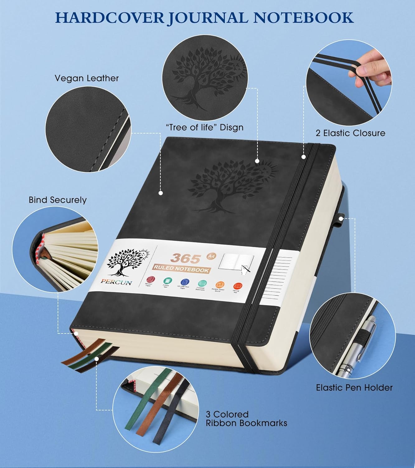 A4 Lined Journal Notebook,365 Page Large Leather Journals for Writing Women Men,Hardcover Notebook with 100Gsm Thick Pages for Travel,Work,School,College Ruled, Daily Diary (8.5" x 11.4")
