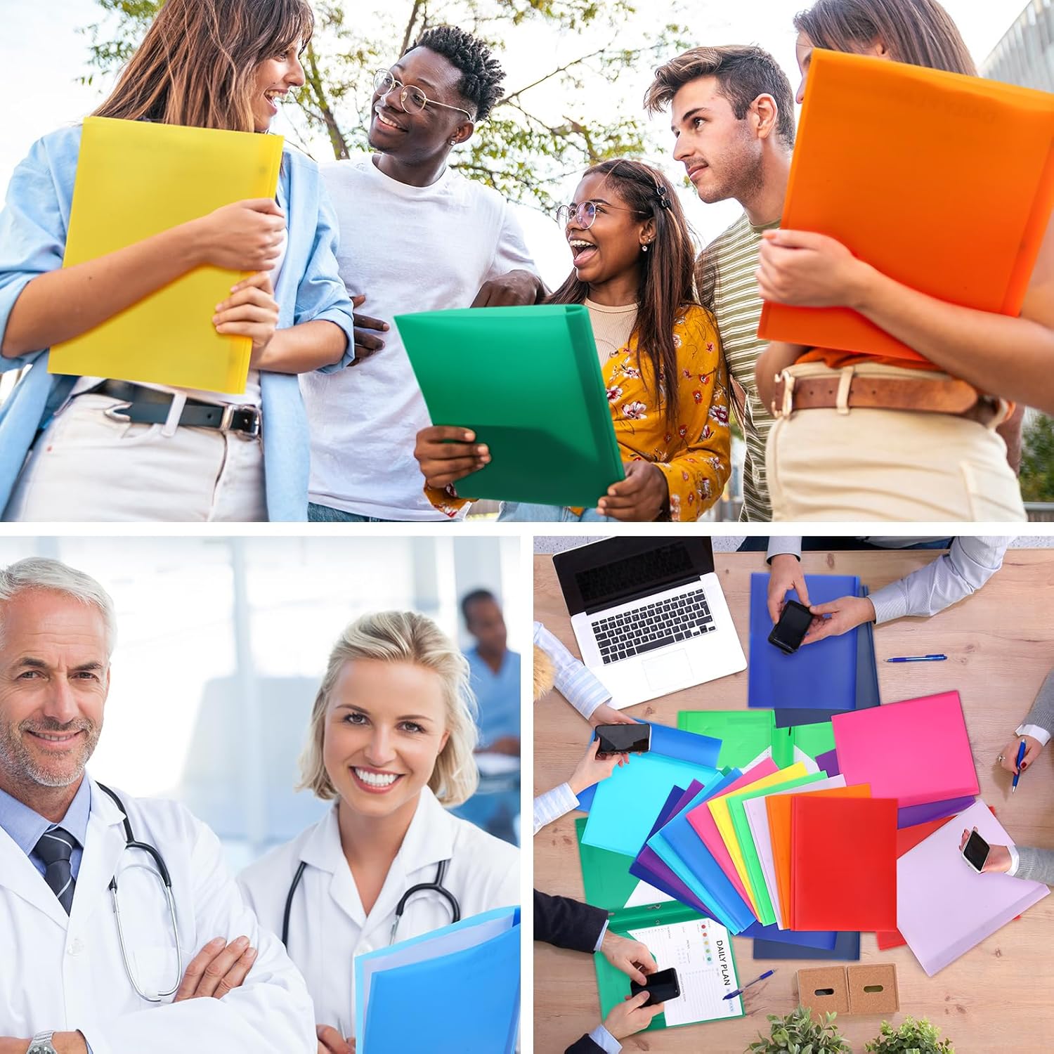 Patelai 48 Pcs Plastic Folders with 2 Pockets and 3 Prongs Home Folders with Card Slot Letter Size Heavy Duty Report Covers for Back to School(Stylish Color,Classic)