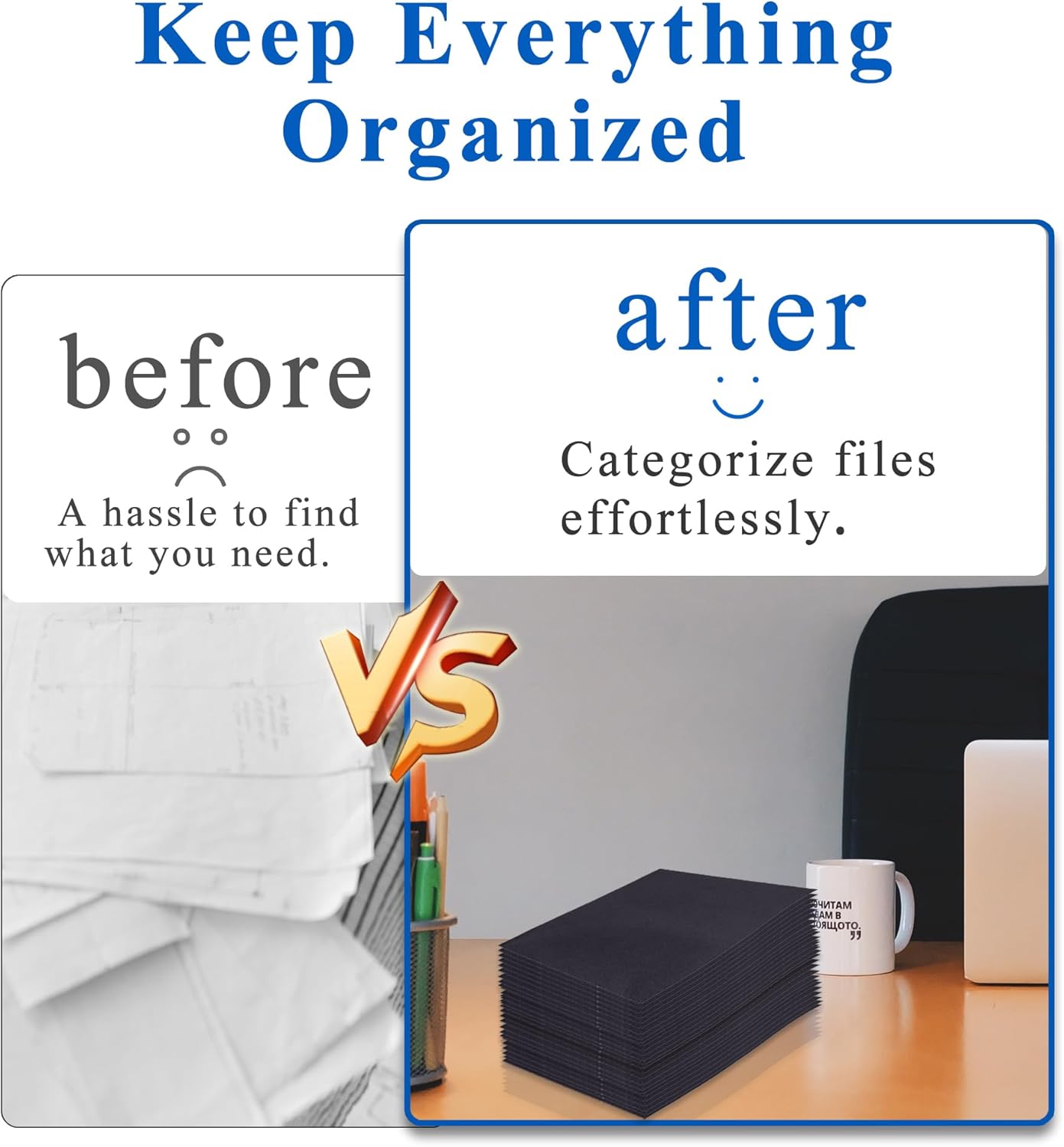 - Package Includes:50 packs black file folders with 2 pockets and business card slot,100 plus Sheet Capacity,enough use for you,perfect for school,paperwork,office,business.