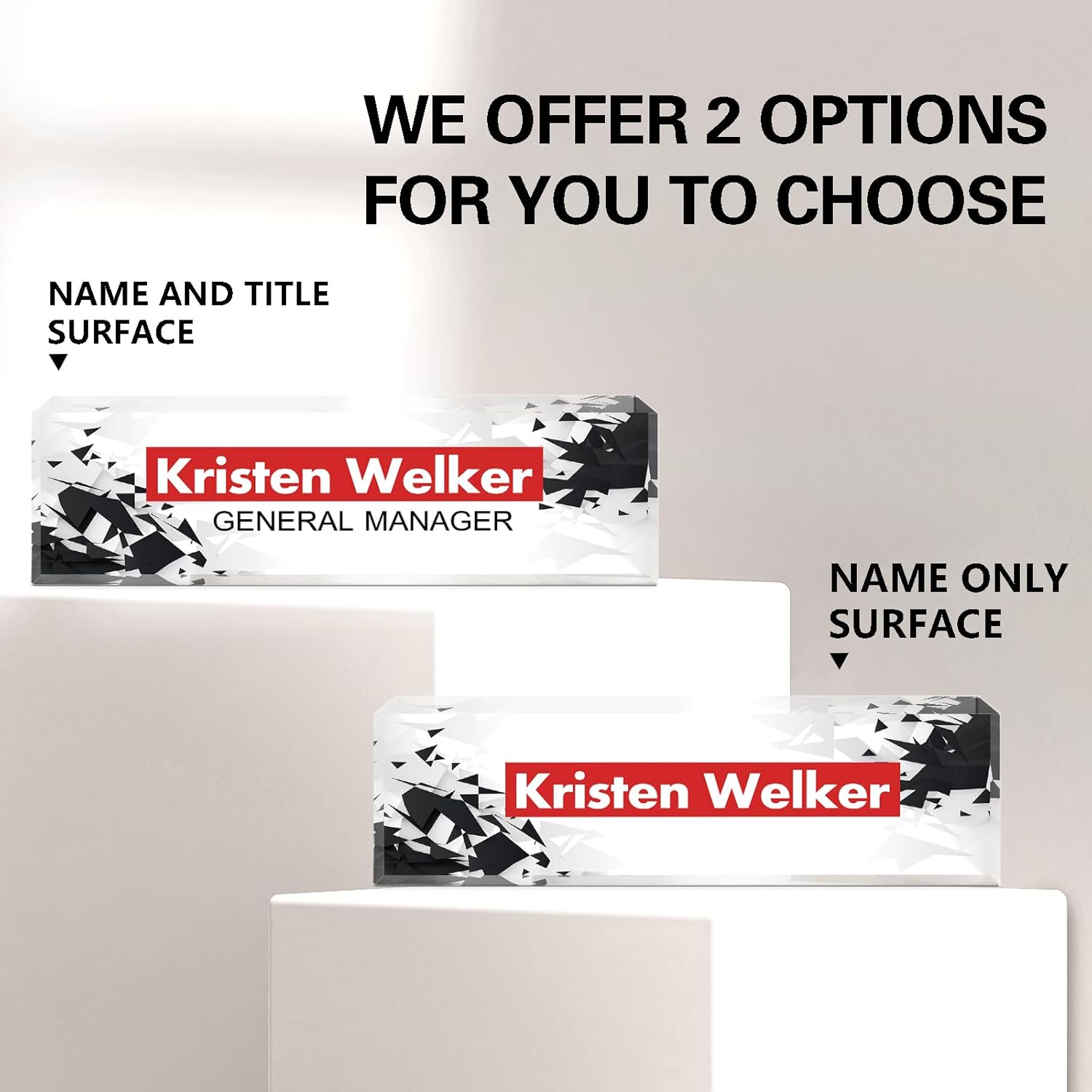 Gowellly Desk Name Plate Personalized - Custom Acrylic Name Plate for Desk - Enterprise Custom Logo/Text nameplates - Employee Appreciation Gifts (White/Red)