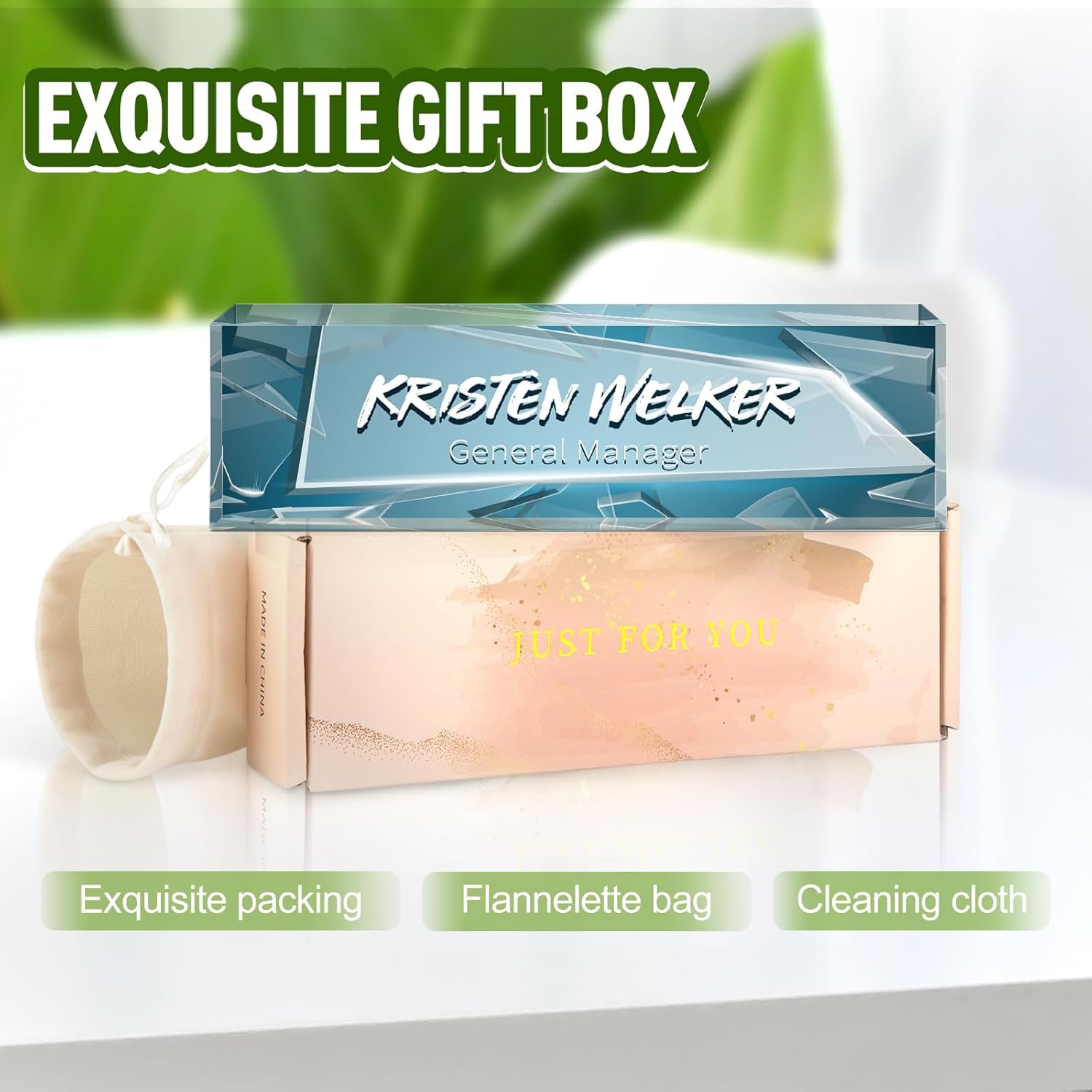 Gowellly Desk Name Plate Personalized - Custom Acrylic Name Plate for Desk - Enterprise Custom Logo/Text nameplates - Employee Appreciation Gifts (Broken Glass-1)
