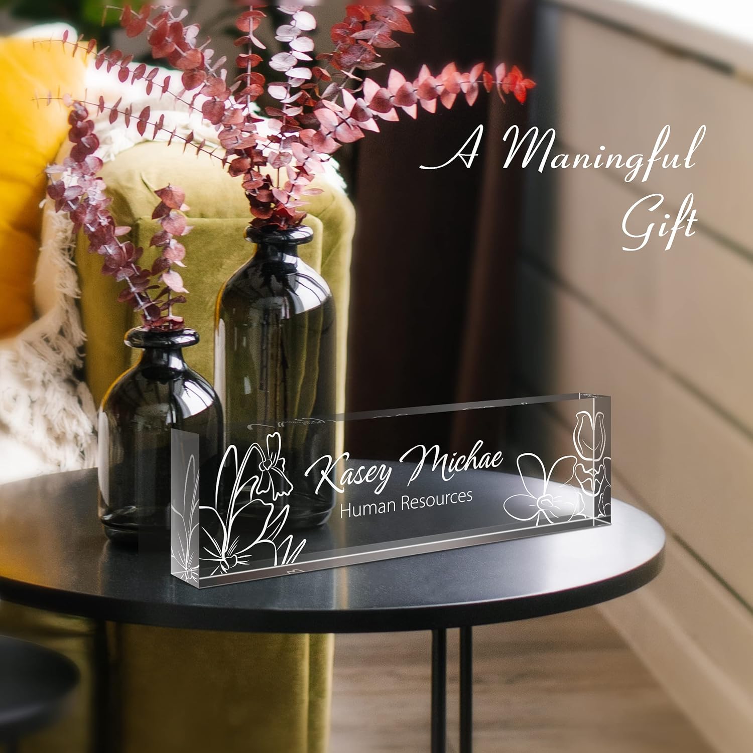 Gowellly Desk Name Plate Personalized - Custom Acrylic Name Plate for Desk - Enterprise Custom Logo/Text nameplates - Employee Appreciation Gifts (engrave-5)