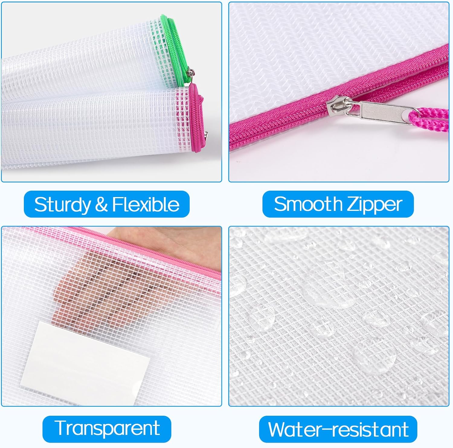 - Translucent Document Bags: The mesh bags are semi-transparent enough to see what's inside while preventing privacy leaks. These translucent file bags with the label outside facilitate document positioning and make finding items easy without unzipping.