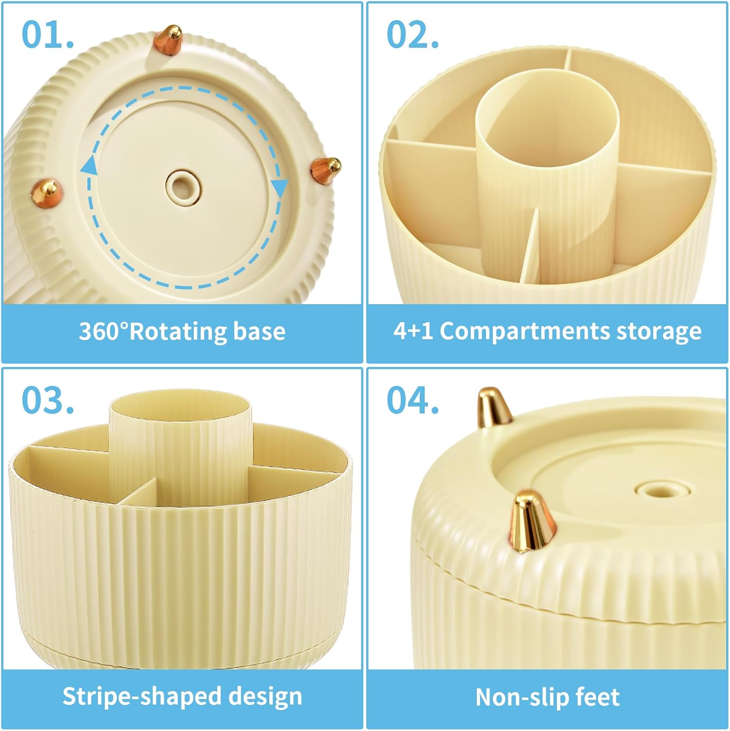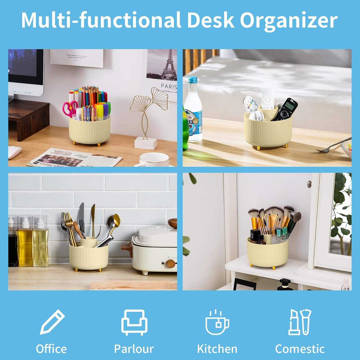 - ăMultipurpose Desktop Organizeră: This rotating storage organizer is perfect for pencils, cosmetics, bathroom necessities, toiletries, and even kitchen utensils. Try it in your craft room, playroom, laundry/utility room, and even inside bathroom cabinets or under the sink; Store extra office supplies like painting pens, correction tape, scissors, TV Remote, and more; Even headphones or a charger will no longer be lying around in the future! Maximize your vertical space and keep your desk clear.
