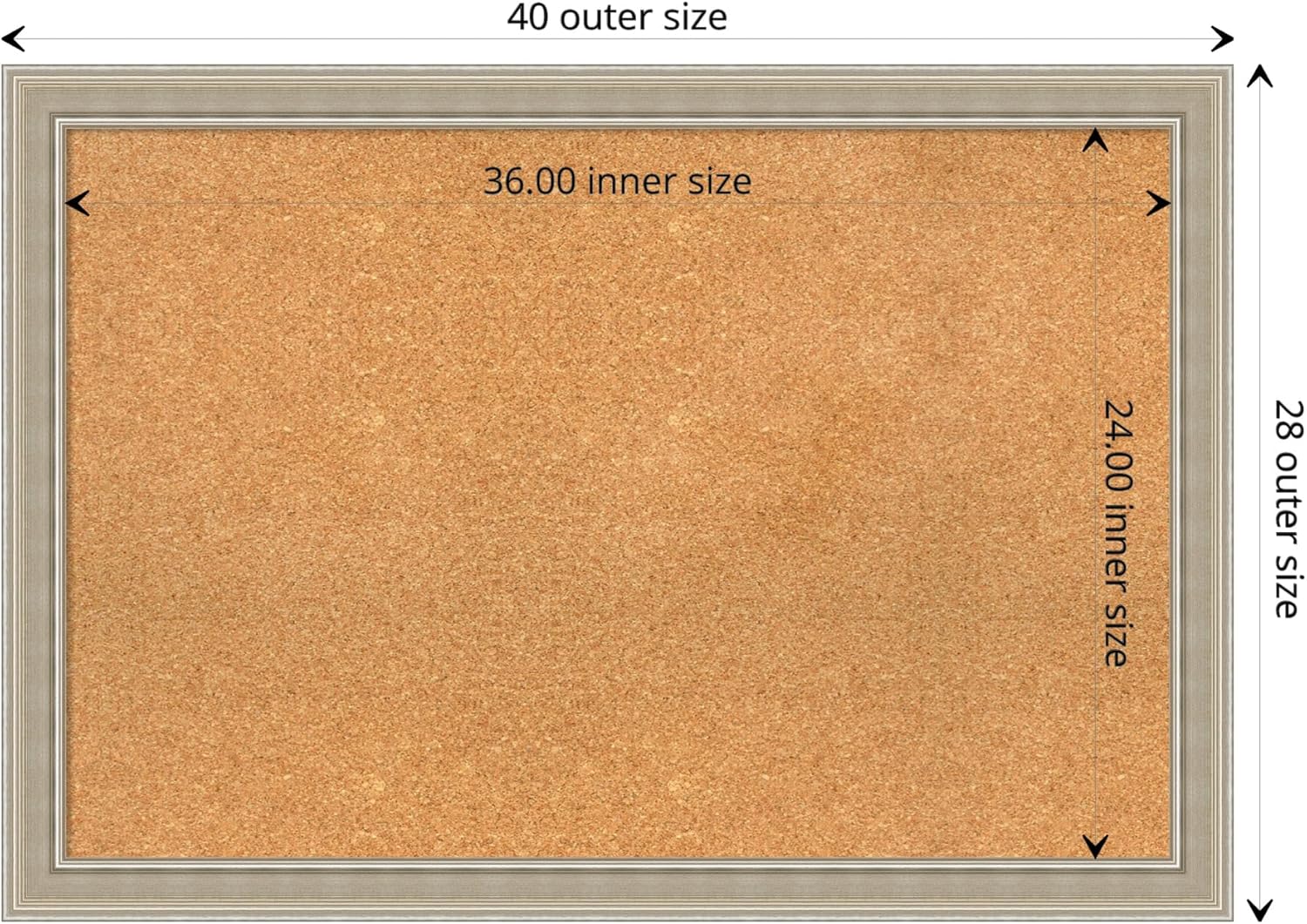 - DIMENSIONS: The overall size of this framed corkboard measures 40 in. x 28 in., including the frame. Its functional cork board area measures 36 in. x 24 in.