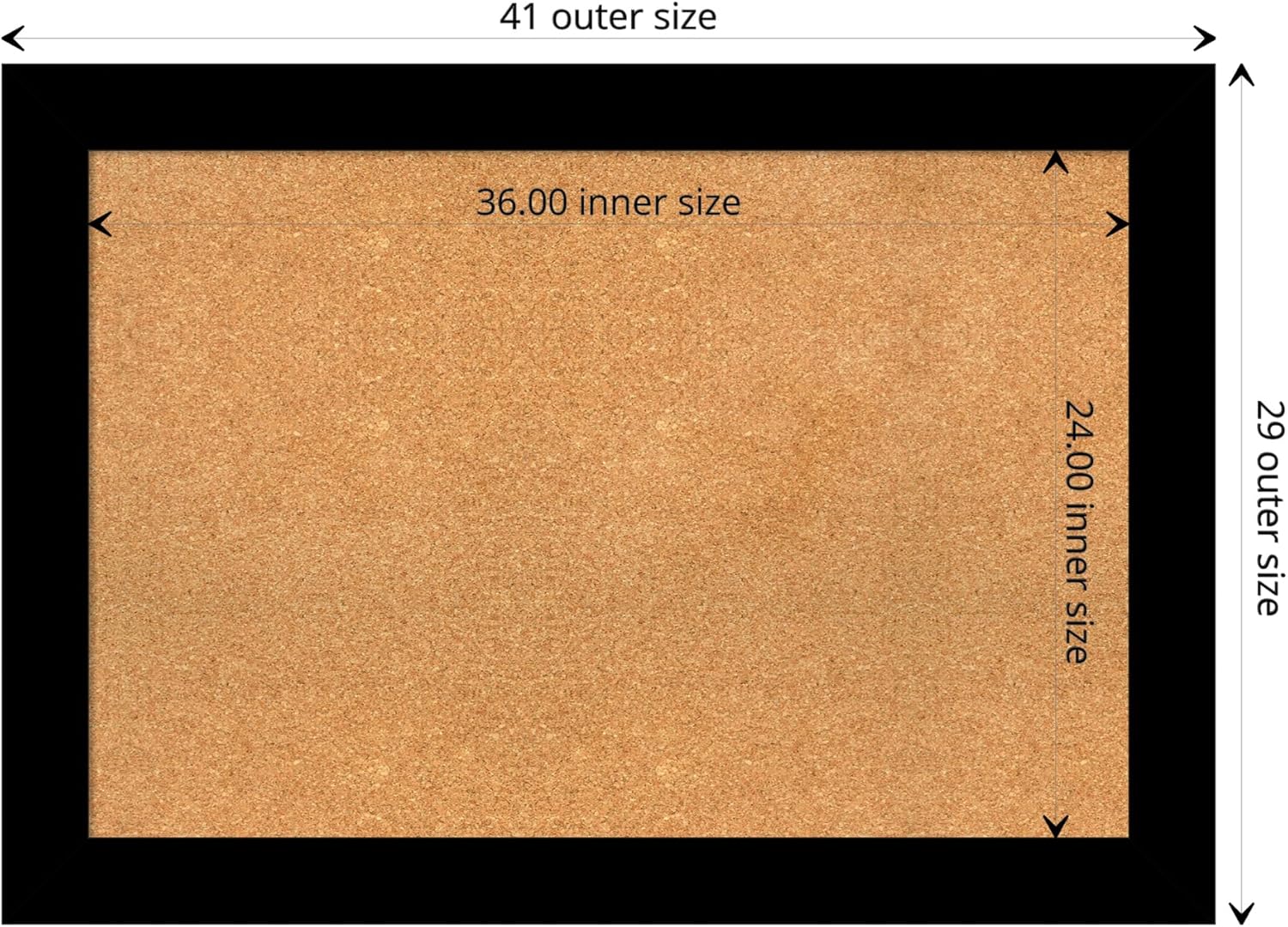 - DIMENSIONS: The overall size of this framed corkboard measures 41 in. x 29 in., including the frame. Its functional cork board area measures 36 in. x 24 in.